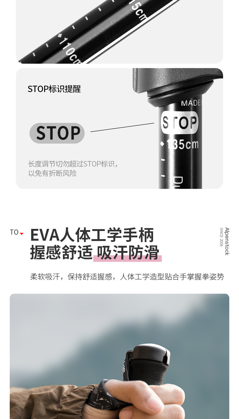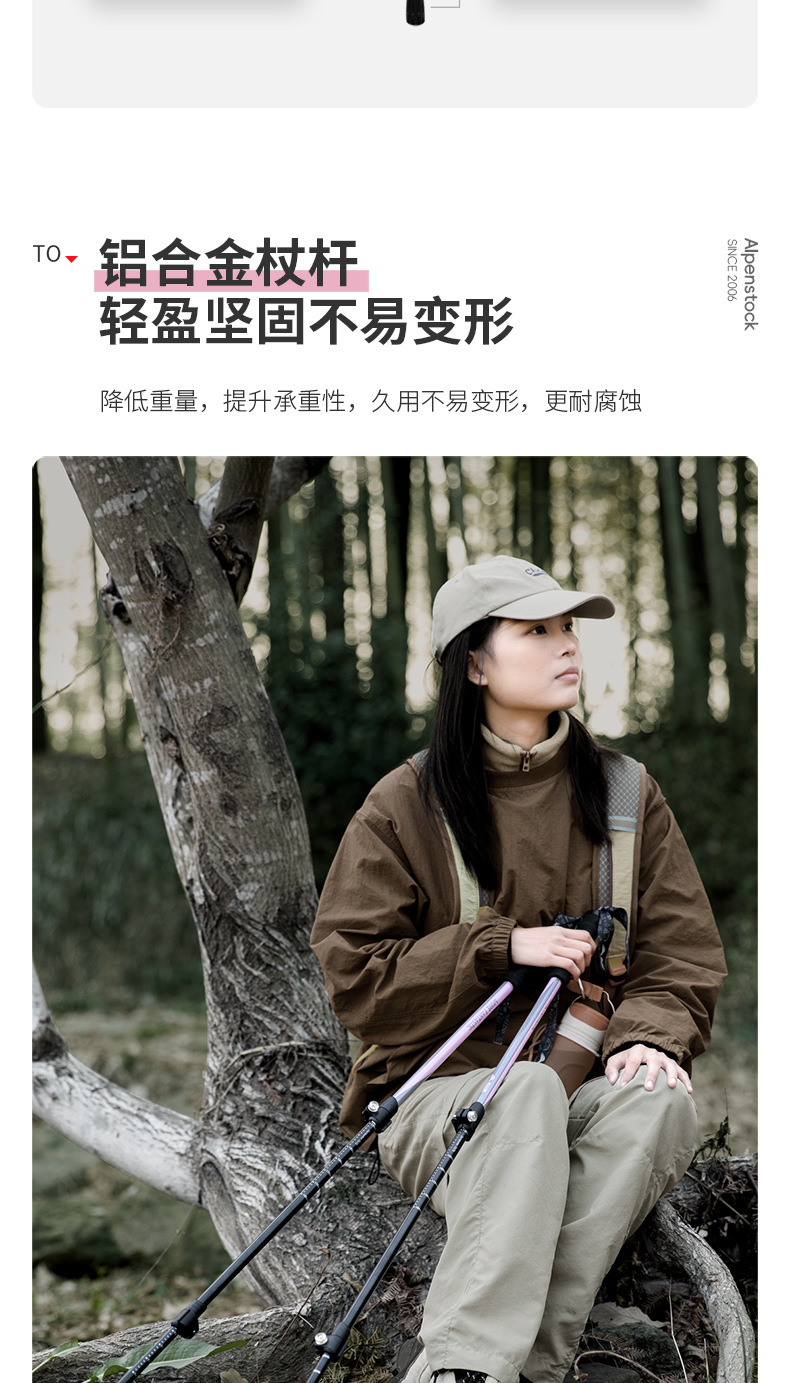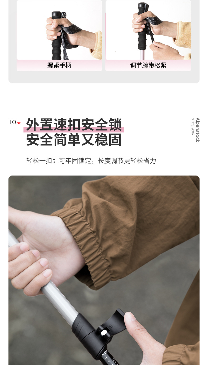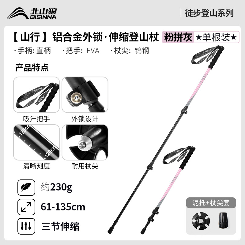 Beishan Wolf 새로운 야외 초경량 알루미늄 합금 외부 자물쇠 등반 스틱 개폐식 하이킹 지팡이를 걷는 지팡이