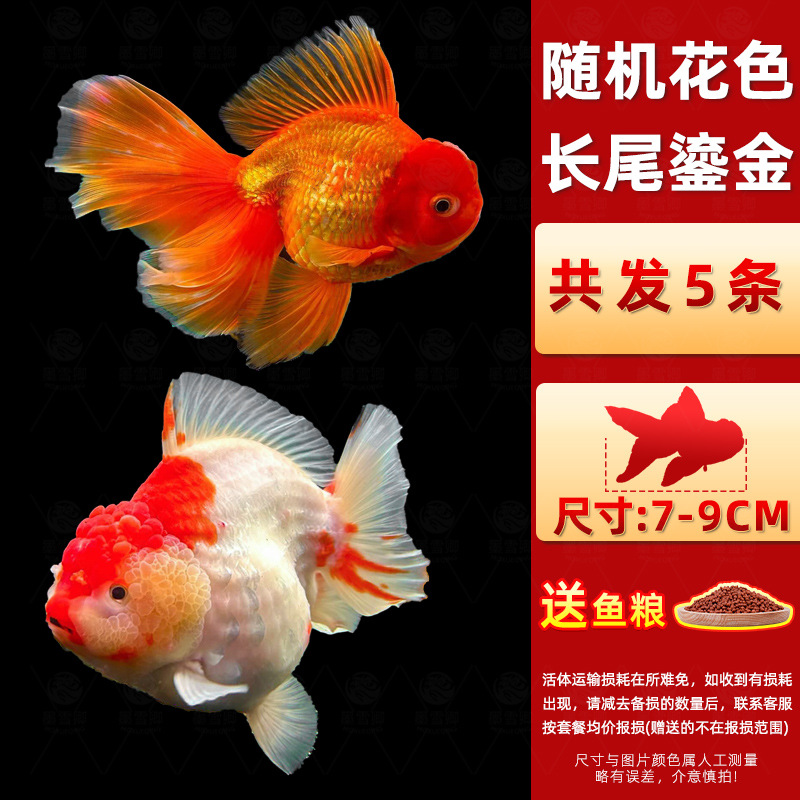 • 9-11cm 무작위 색상의 금붕어 5마리, 무료 생선사료