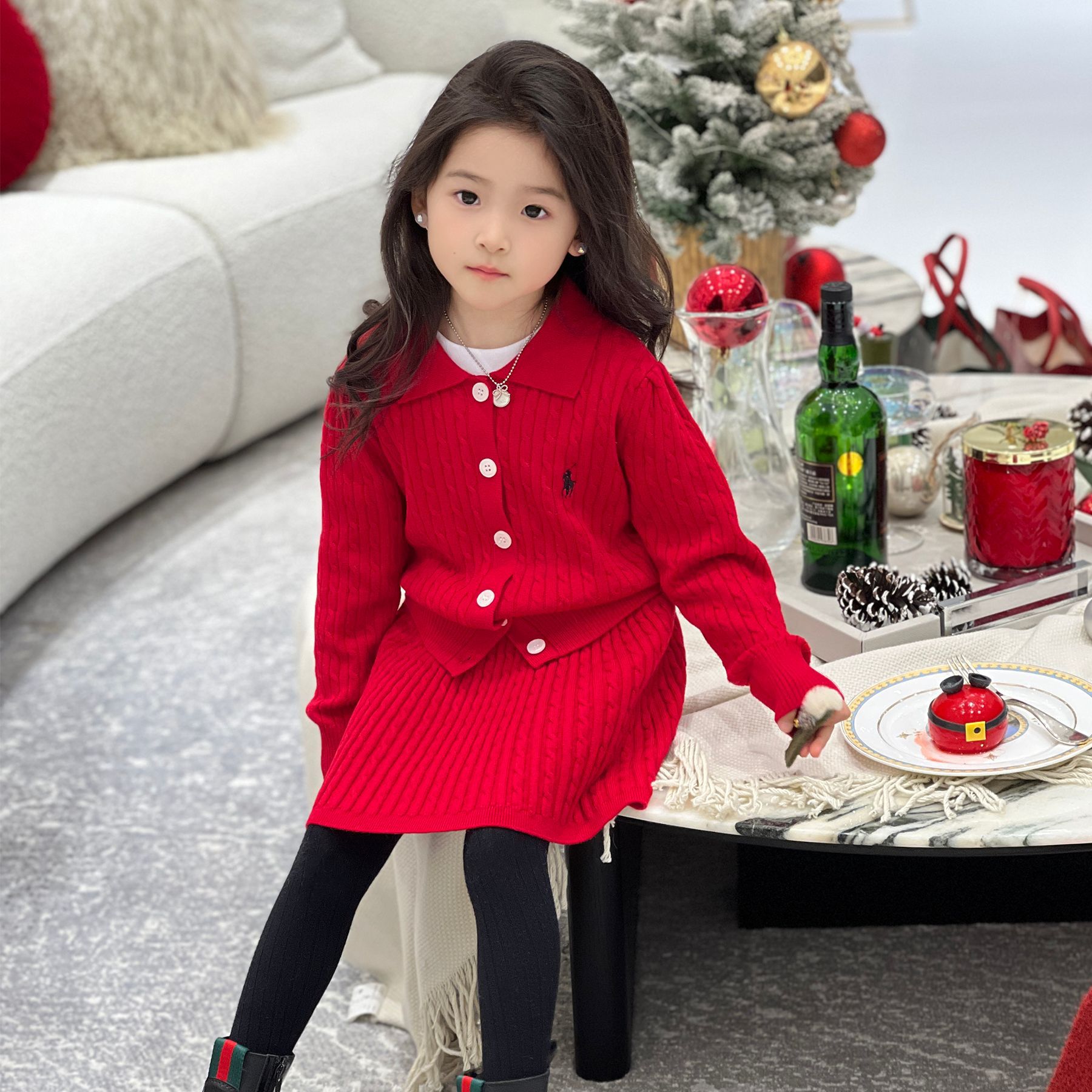 봄 2025 새로운 어린이 소녀 한국 스웨터 카디건 니트 스커트 니트 카디건 세트스토어 가기
