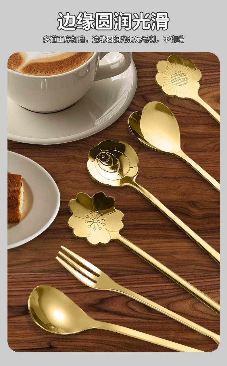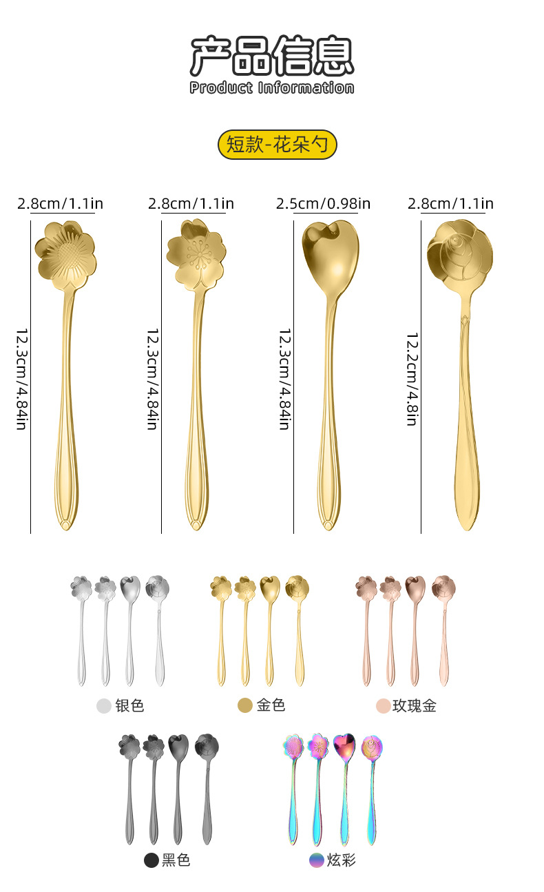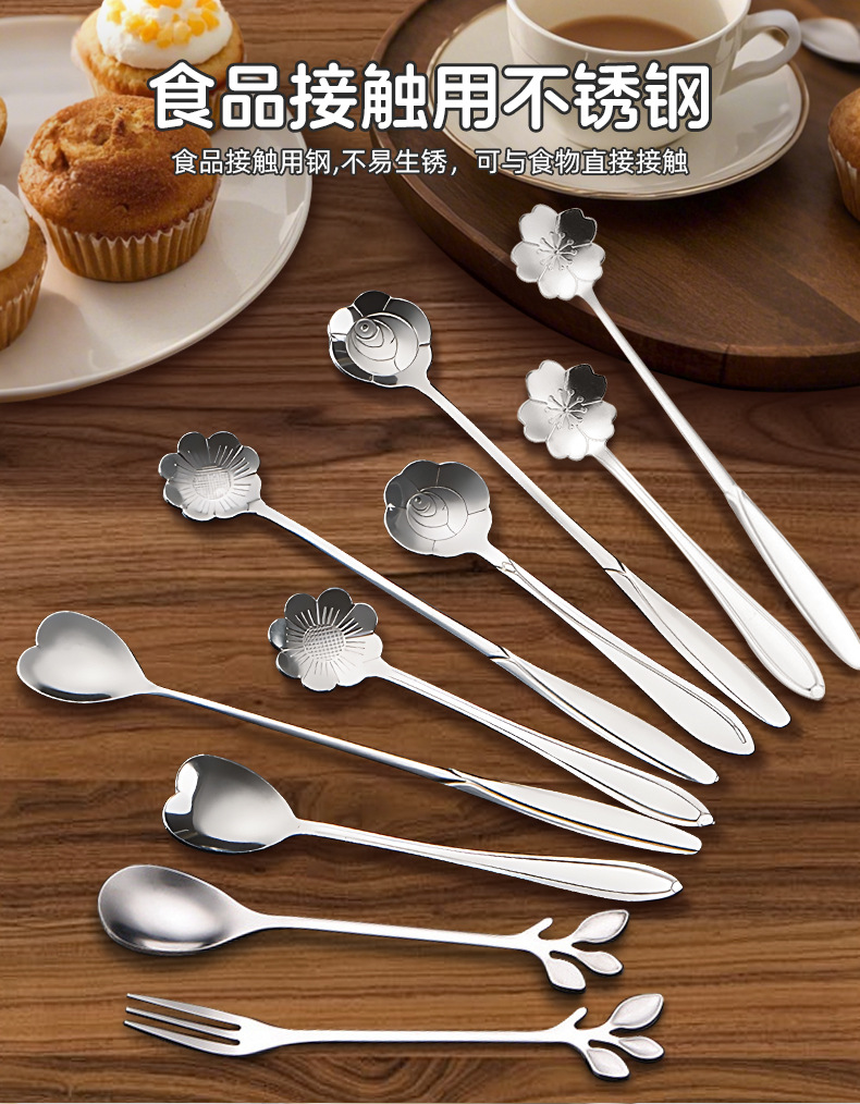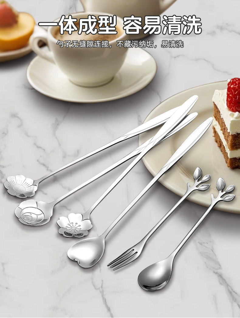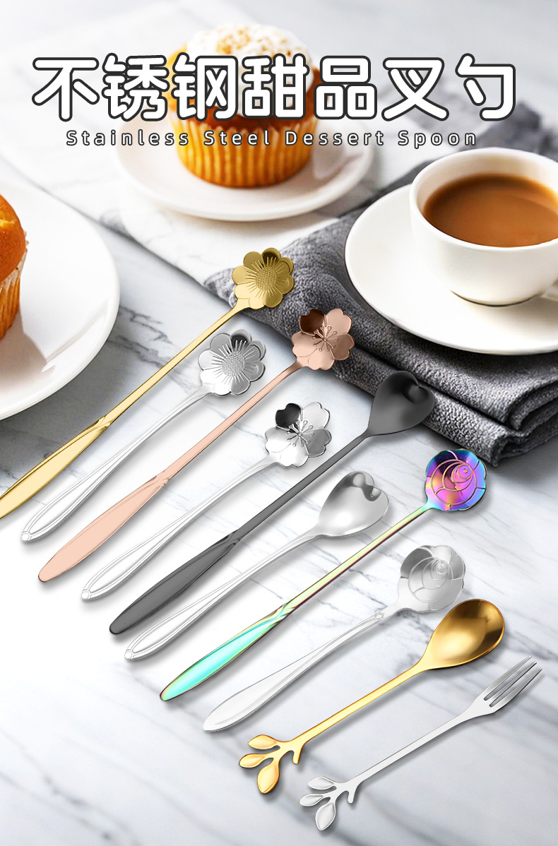 스테인레스 스틸 스푼 꽃 숟가락 식기 커피 스푼 혼합 숟가락 벚꽃 국화 로즈 하트 모양의 숟가락 잎 숟가락 포크