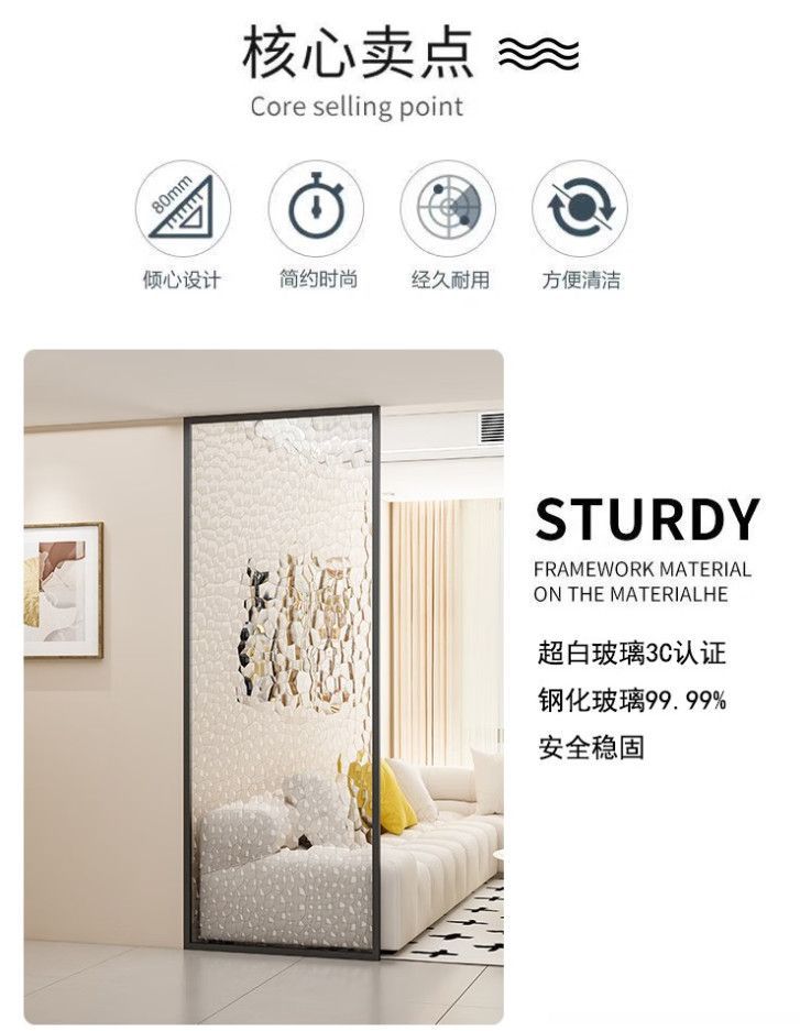 그라디언트 유리 스크린 파티션 거실 간단한 강화 물 파문 창홍 입구 거실 침실 쉼터