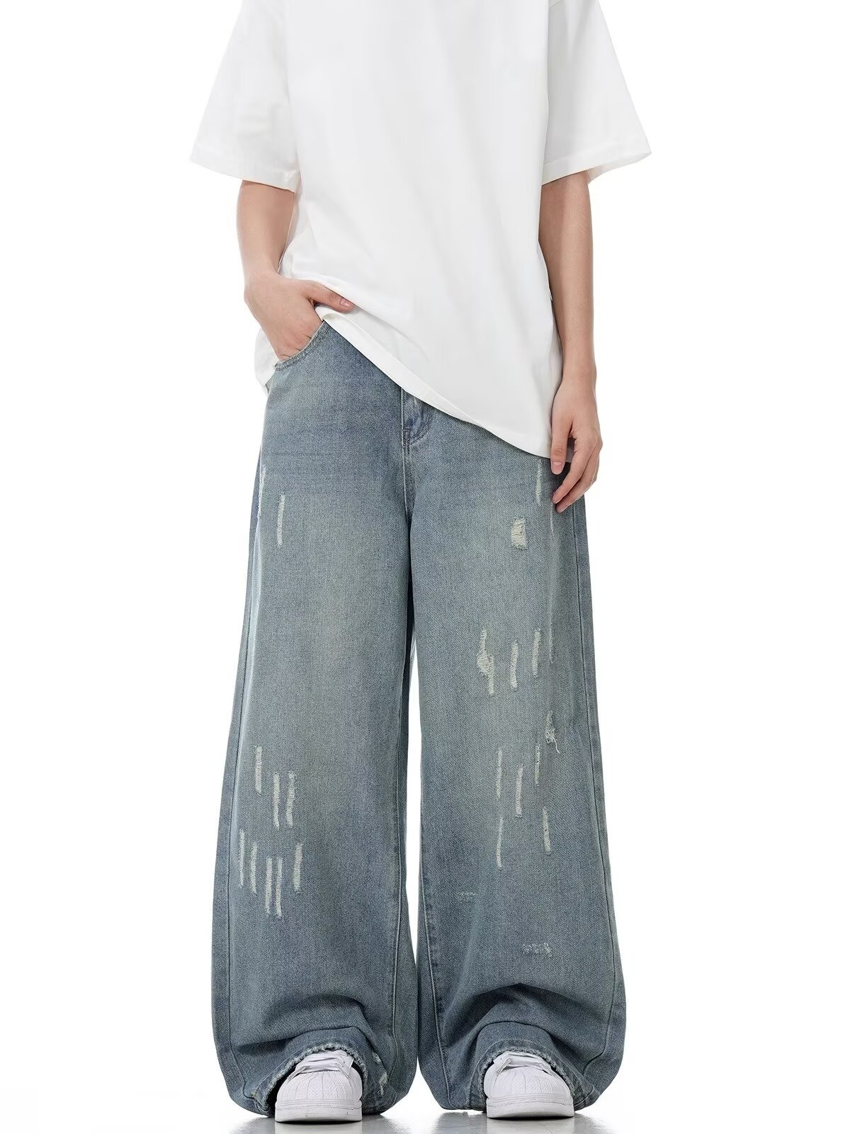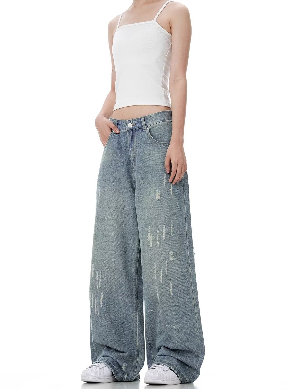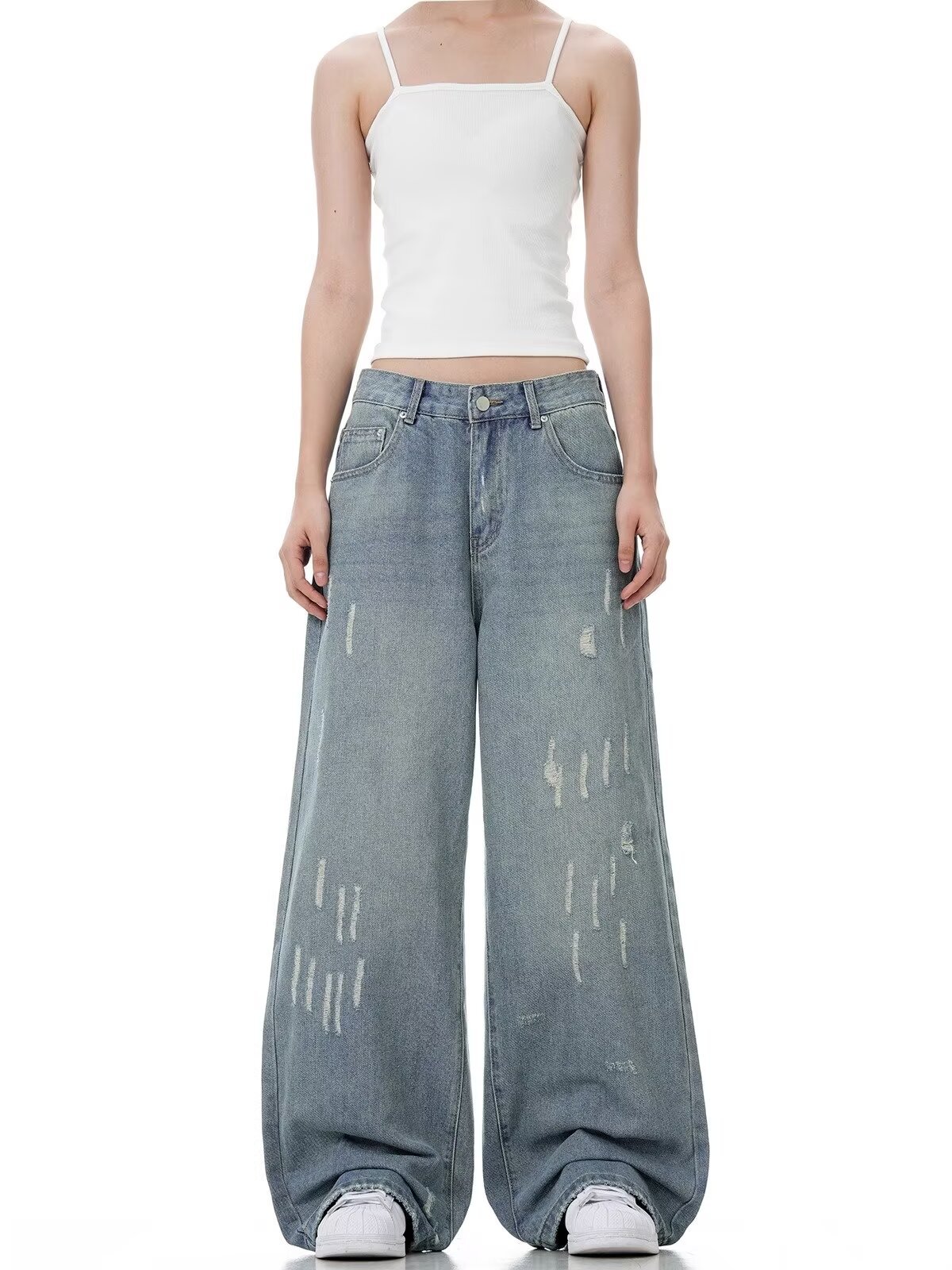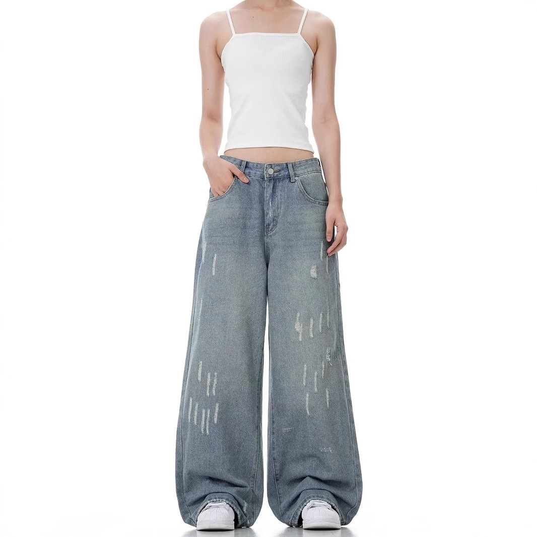2025 새로운 미국 스타일 레트로 세탁 된 청바지 남성과 여성 클린 핏 루즈 캐주얼 새로운 트렌디 바지