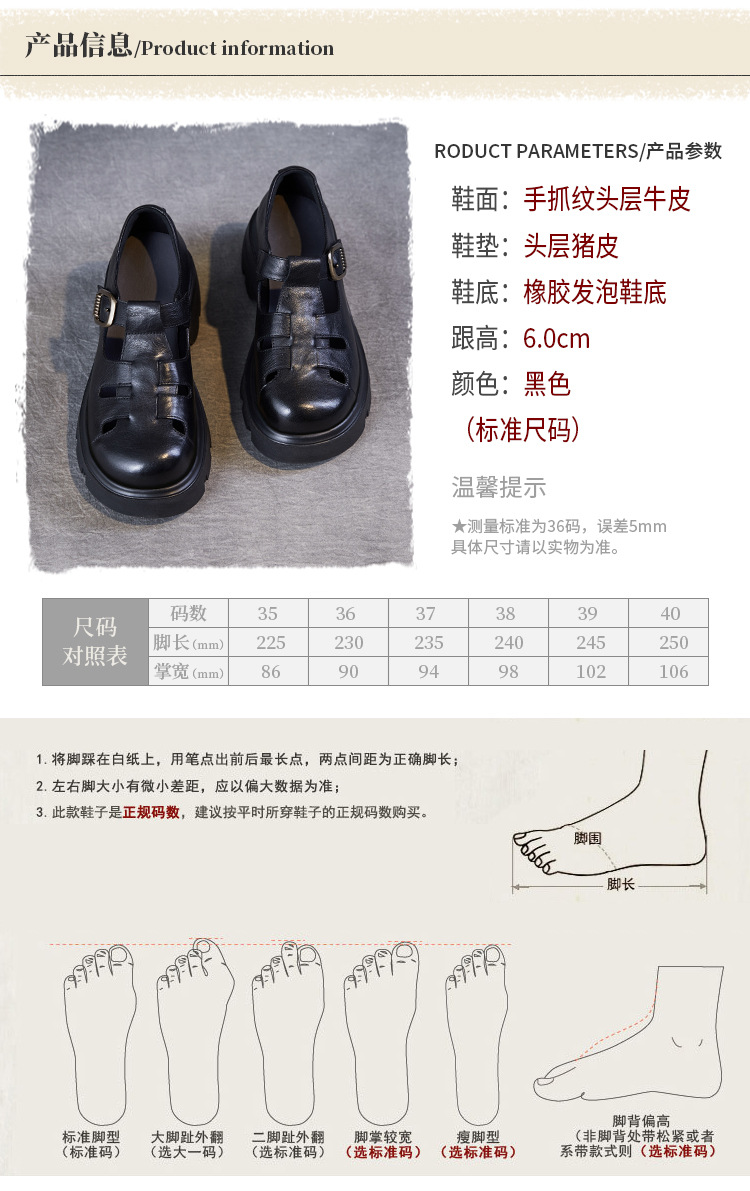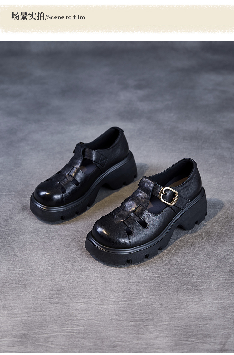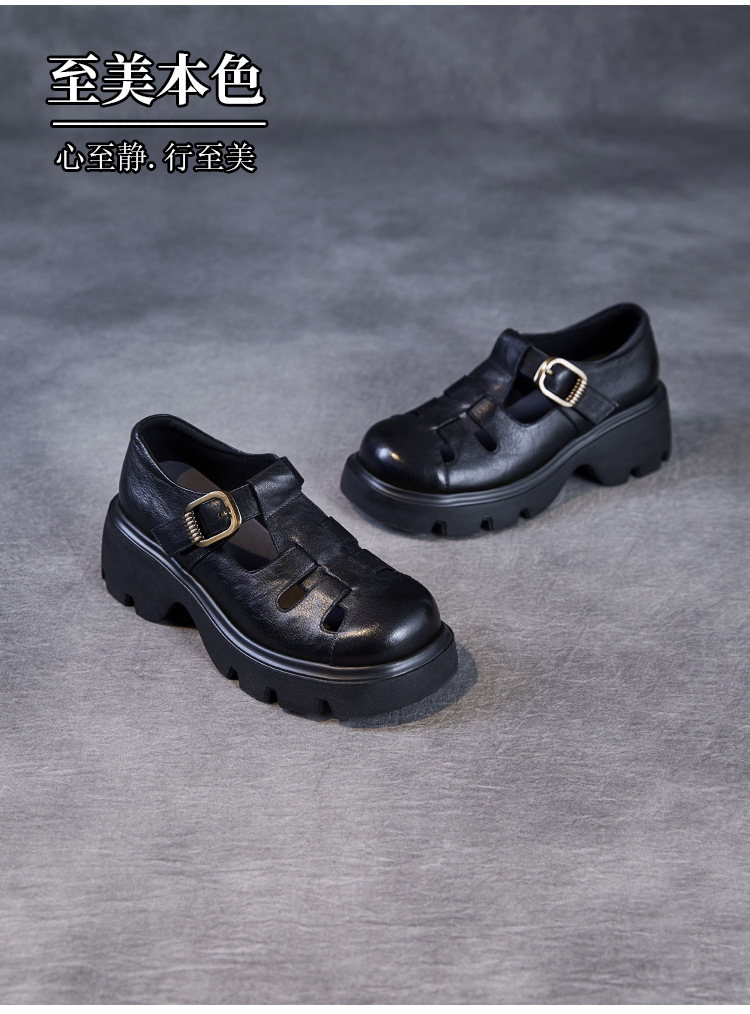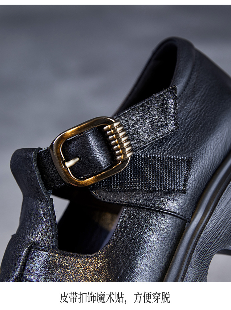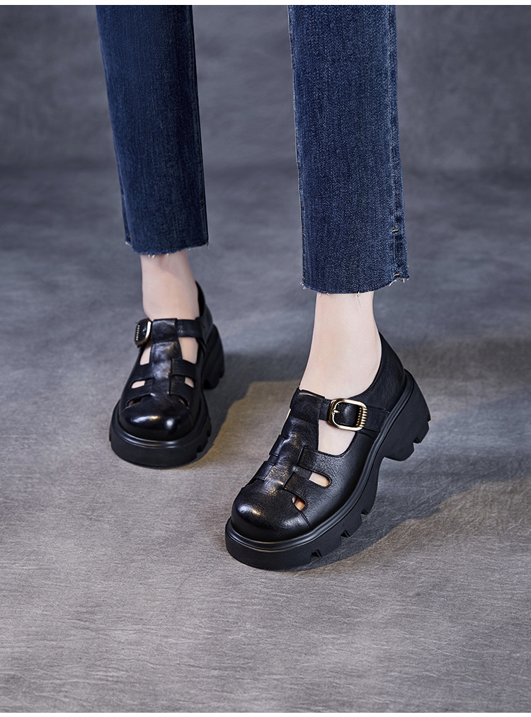 미국에, 2025 년 봄과 여름 가죽 속이 빈 로마 샌들의 첫 번째 레이어 머핀 두꺼운 밑창 짠 돼지 케이지 신발