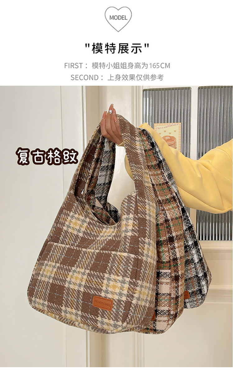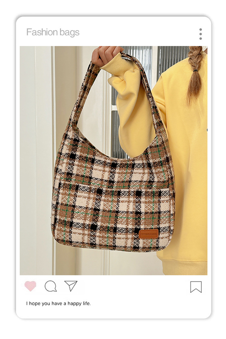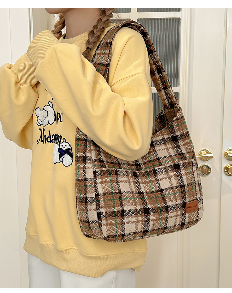 빈티지 격자 무늬 여성용 어깨 가방 대용량 여성 국경 한국식 격자 무늬 올 매치 여자 가방 예술적 틈새 여성 속옷 가방