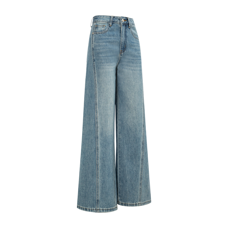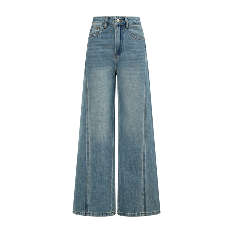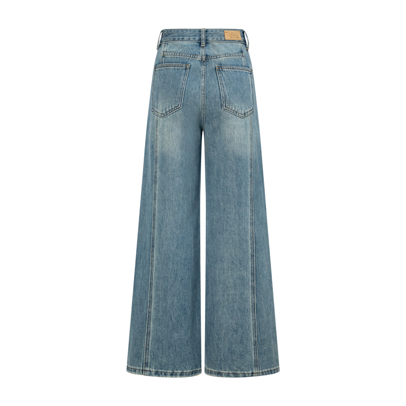 26년 봄 신상 여성용 와이드 데님 팬츠, 아메리칸 스타일 하이웨이스트 레트로 워싱 스플라이싱 디자인, 출퇴근룩, 중산 현지 재고스토어 가기