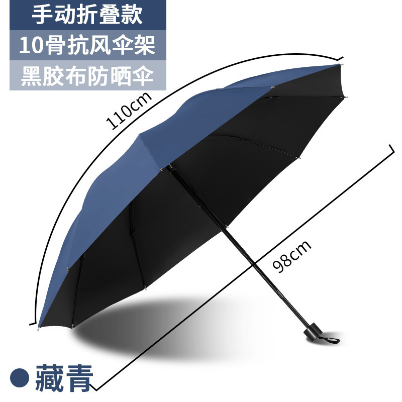 • 10가닥 검정색 플라스틱 우산 네이비 블루