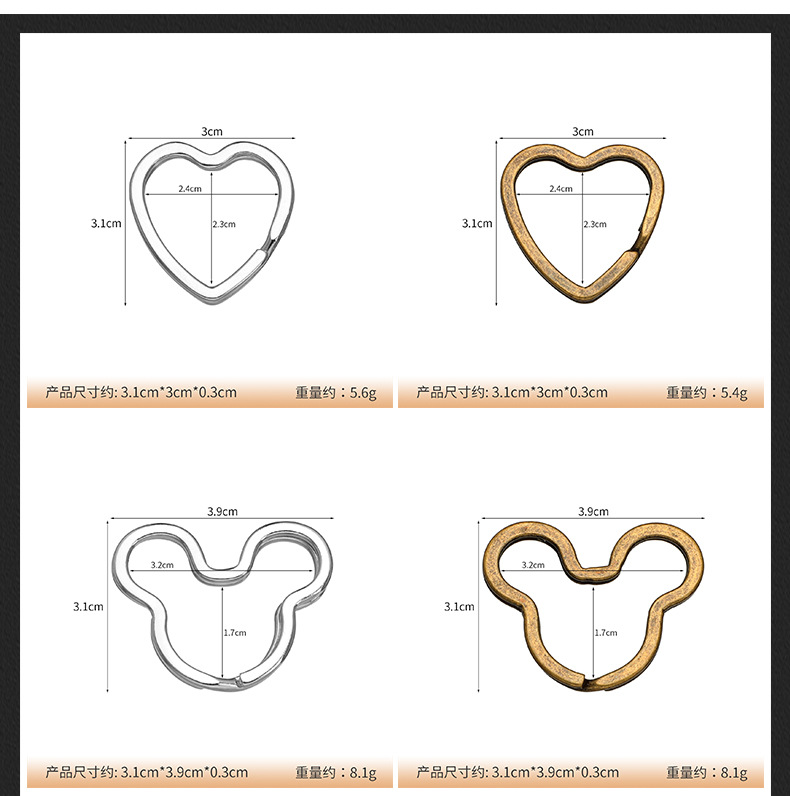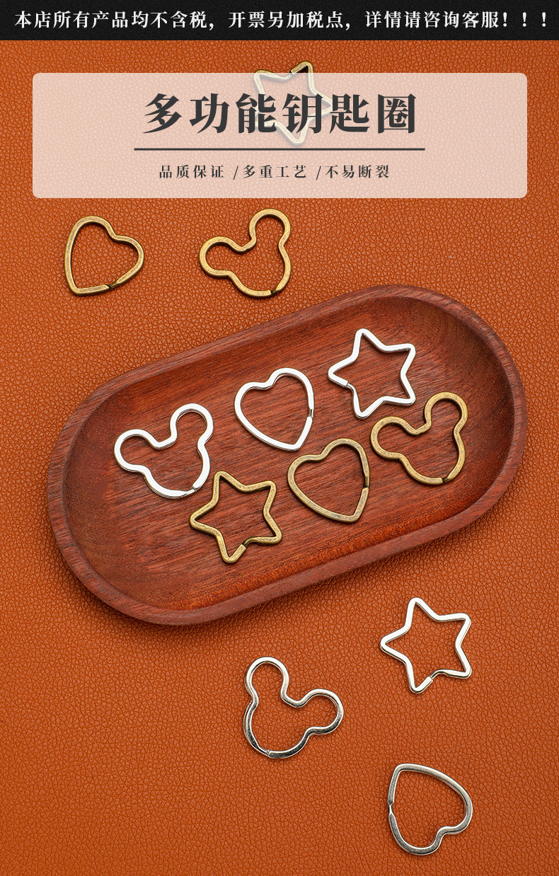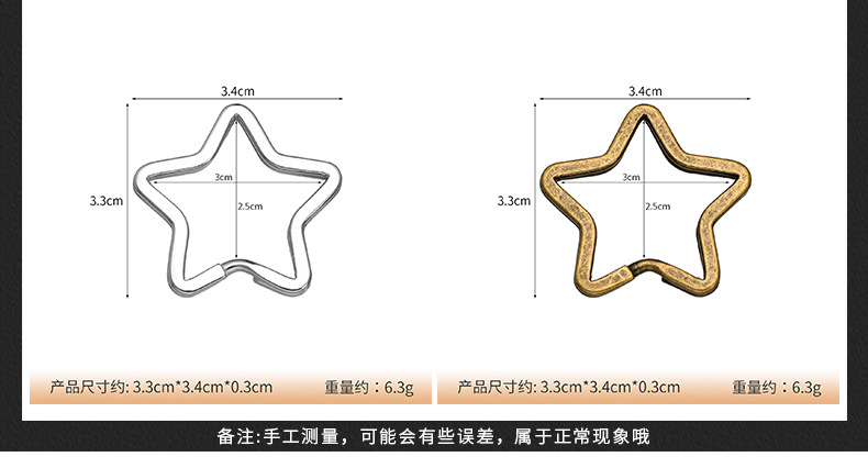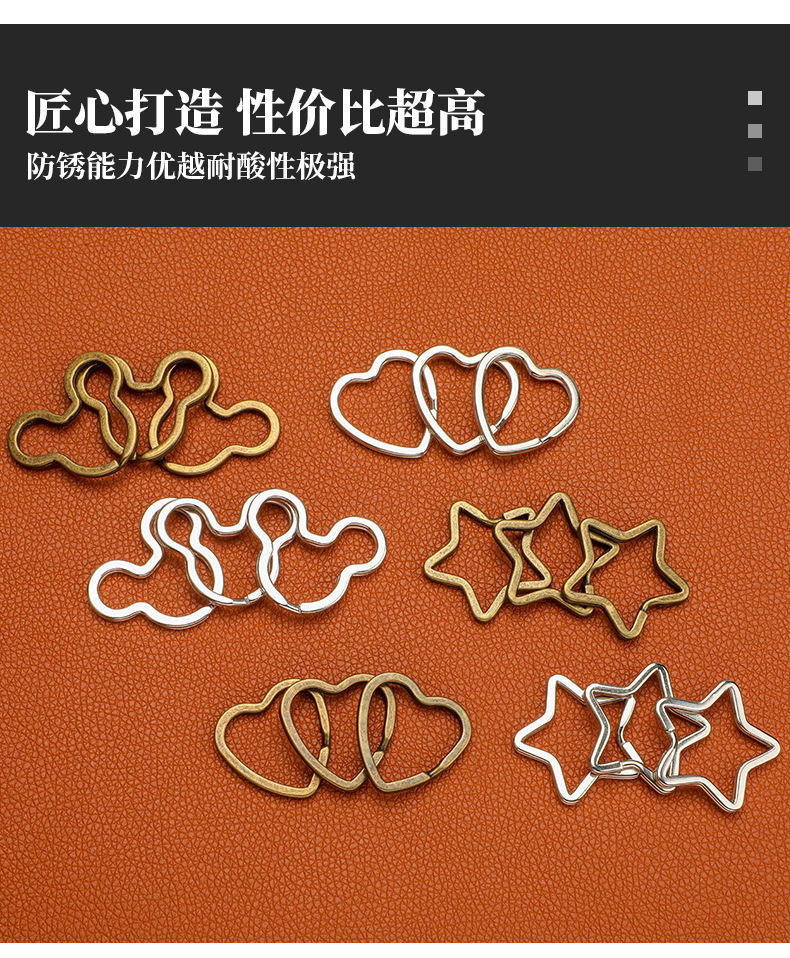 금속 특수 모양의 키 링 링 플랫 키 체인 펜던트 백 장식품 다섯개 별 사랑 액세서리 diy 액세서리스토어 가기