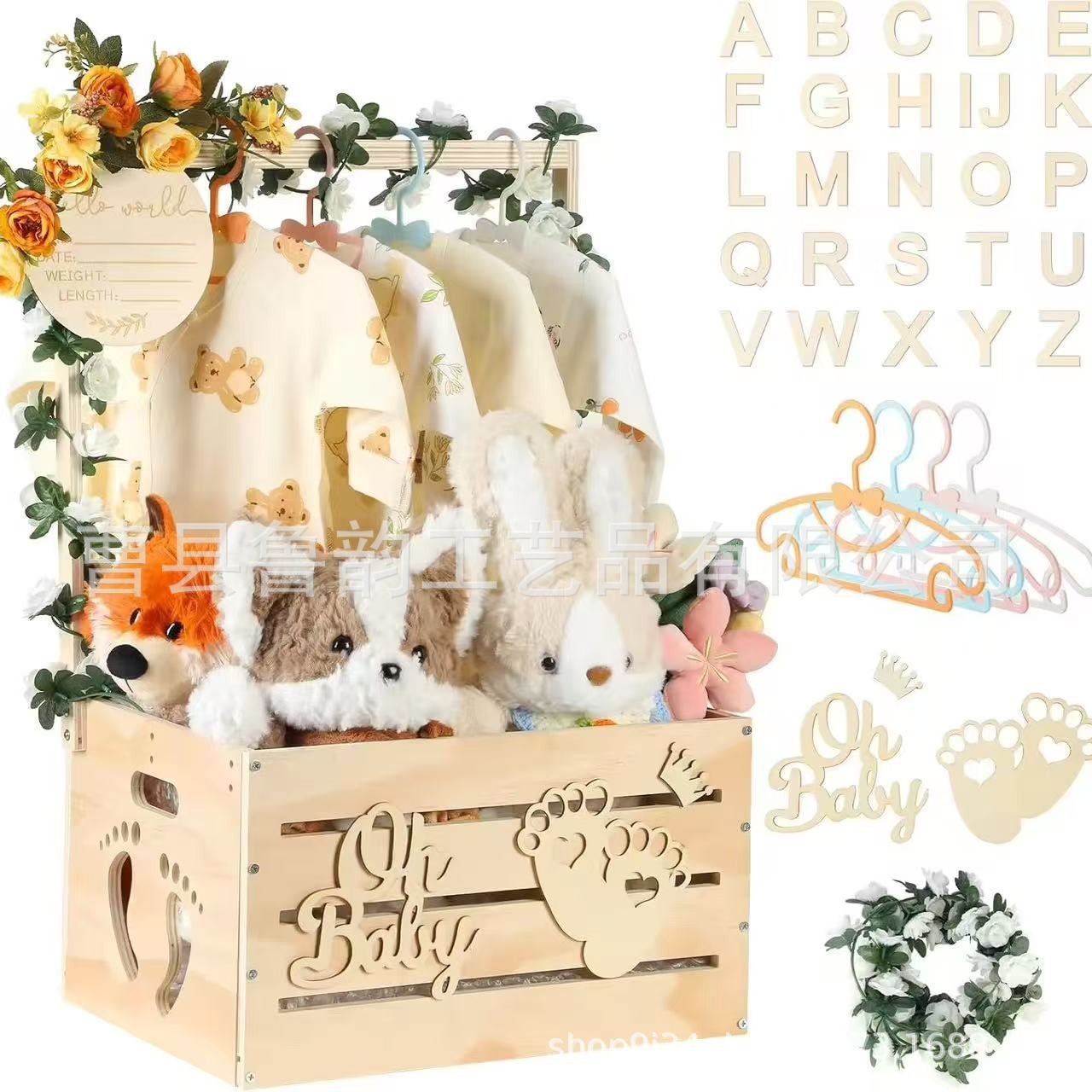 나무 아기 제품 저장 상자 가정용 옷 장난감 저장 바구니 신생아 선물 포장 나무 저장 상자