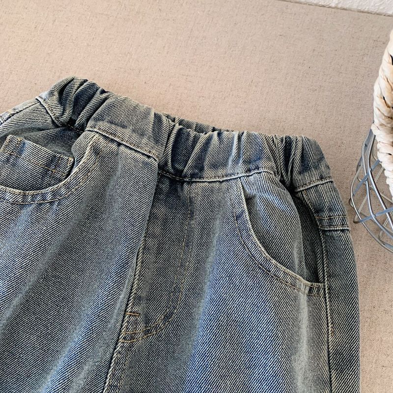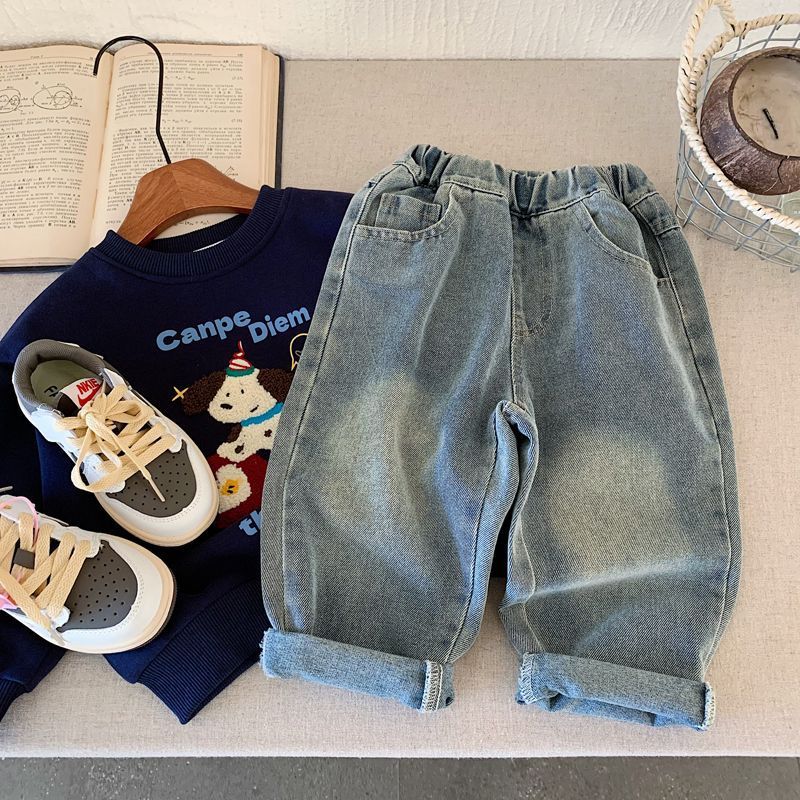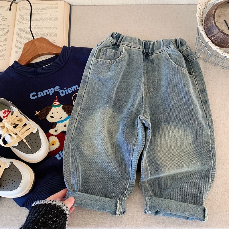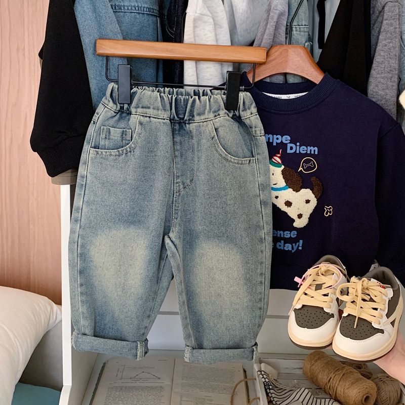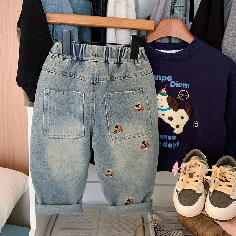 소년 청바지 2025 가을 새로운 스타일 어린이 중공업 자수 라이트 블루 캐주얼 인 당근 바지 바지 유행스토어 가기