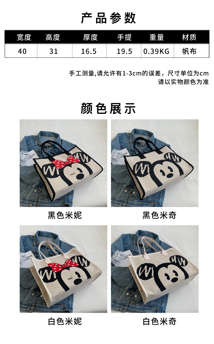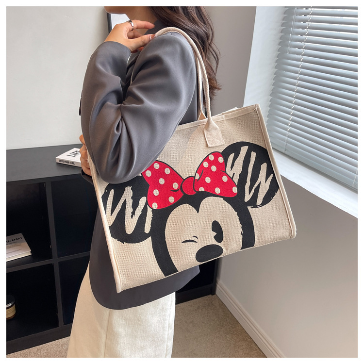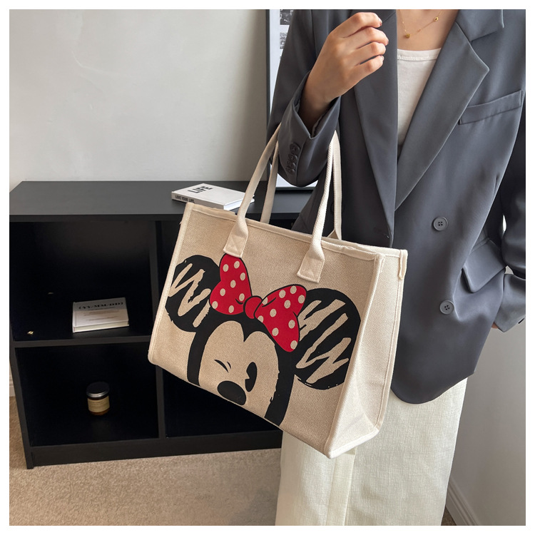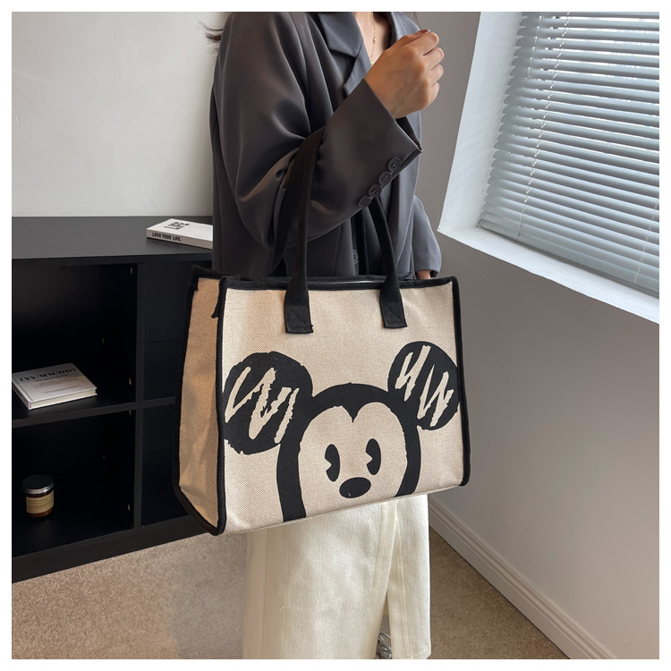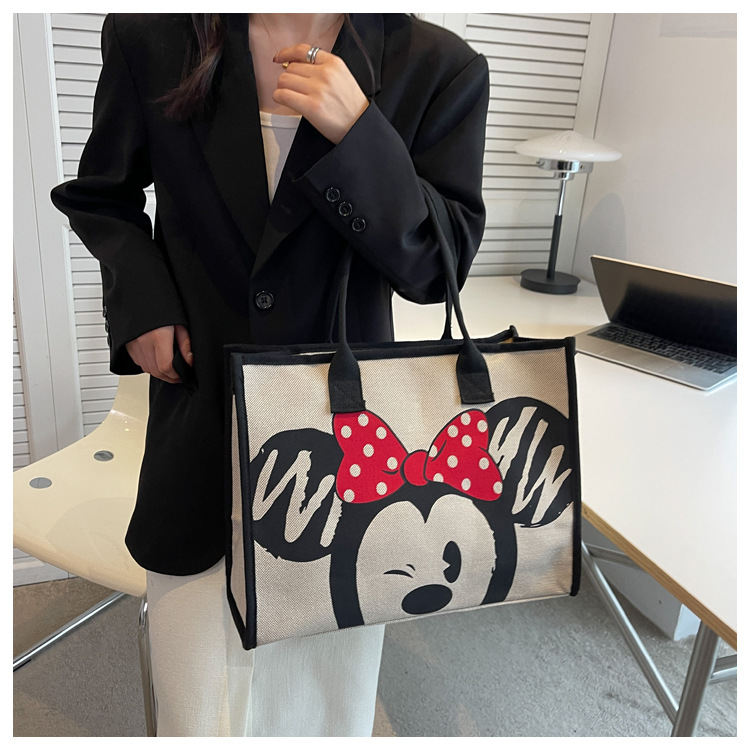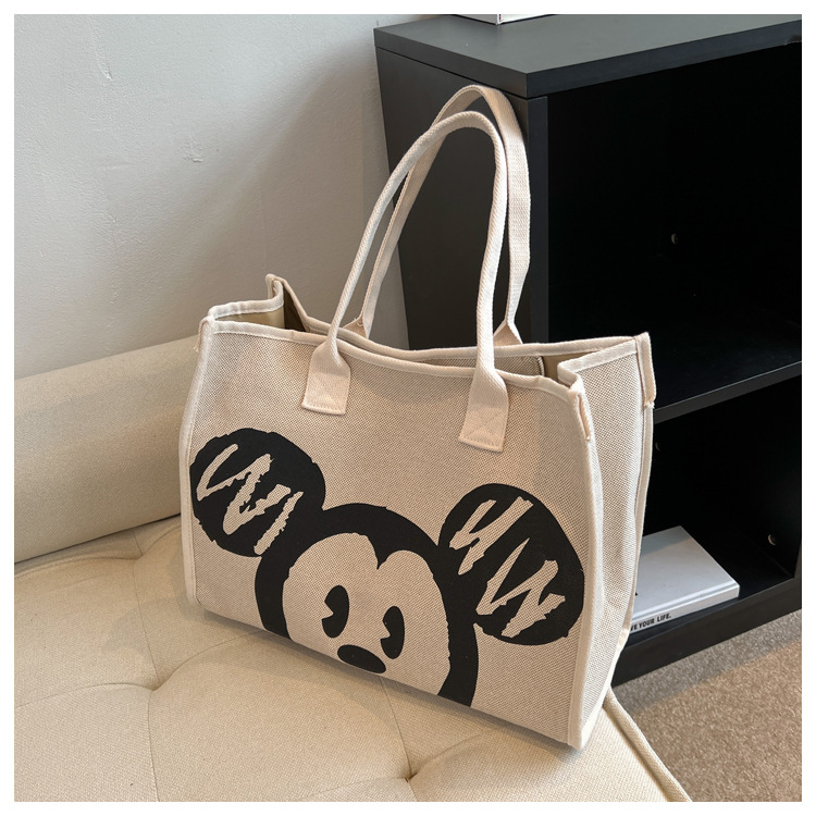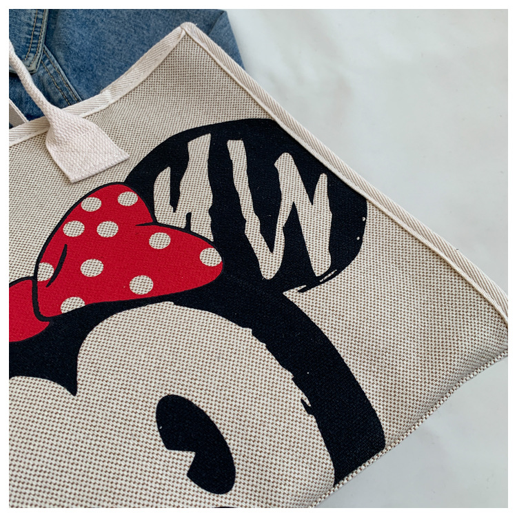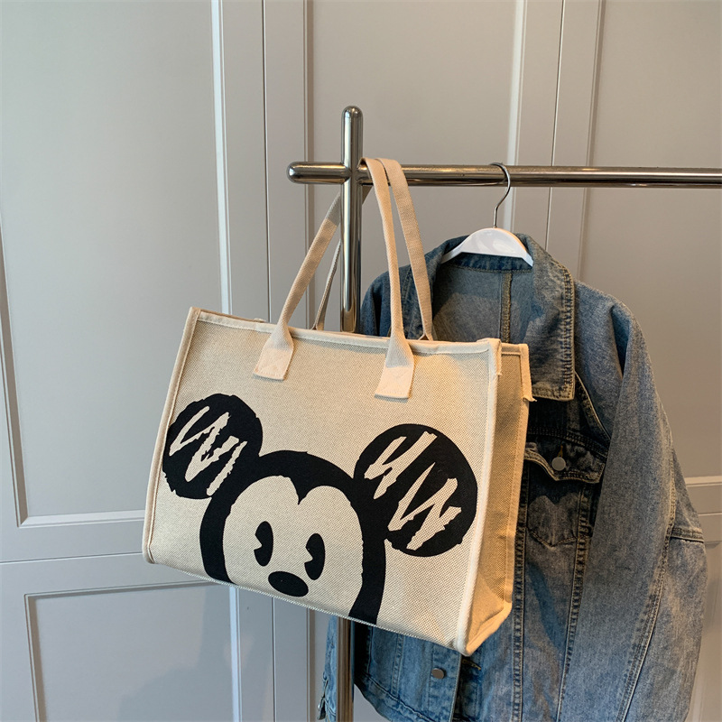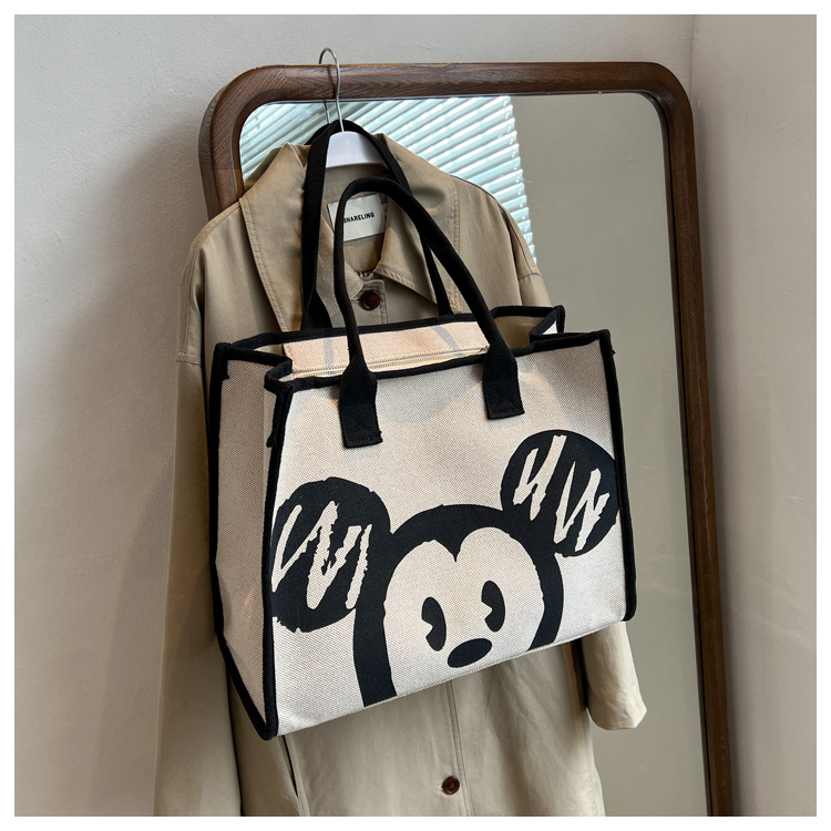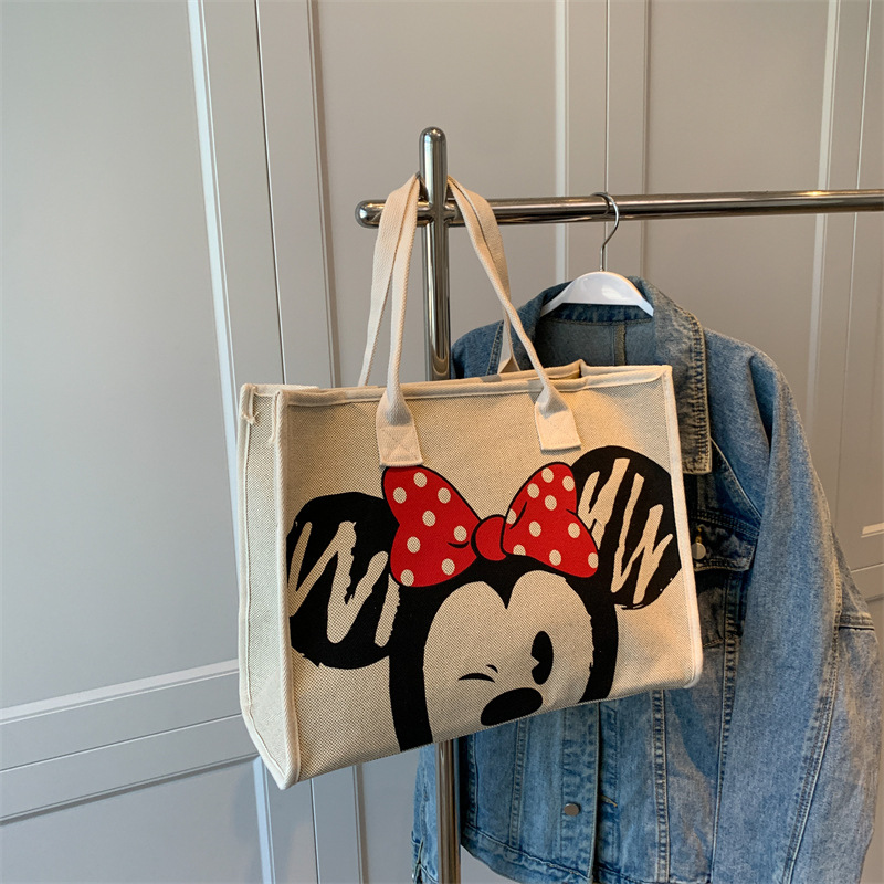 대용량 통근 핸드백 여성의 새로운 모리 스타일 만화 캔버스 인쇄 된 토트 백 올 매치 숄더 백 미라 백