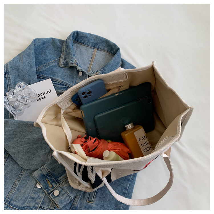 대용량 통근 핸드백 여성의 새로운 모리 스타일 만화 캔버스 인쇄 된 토트 백 올 매치 숄더 백 미라 백스토어 가기