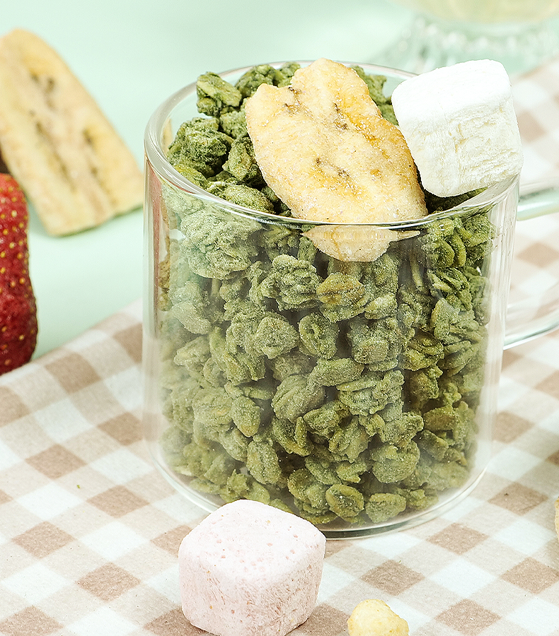 말차 구운 시리얼 견과류 혼합 과일 오트밀 시리얼 크리스프 조식 브루 믹스 요거트 그릇 건조 식사 재료스토어 가기