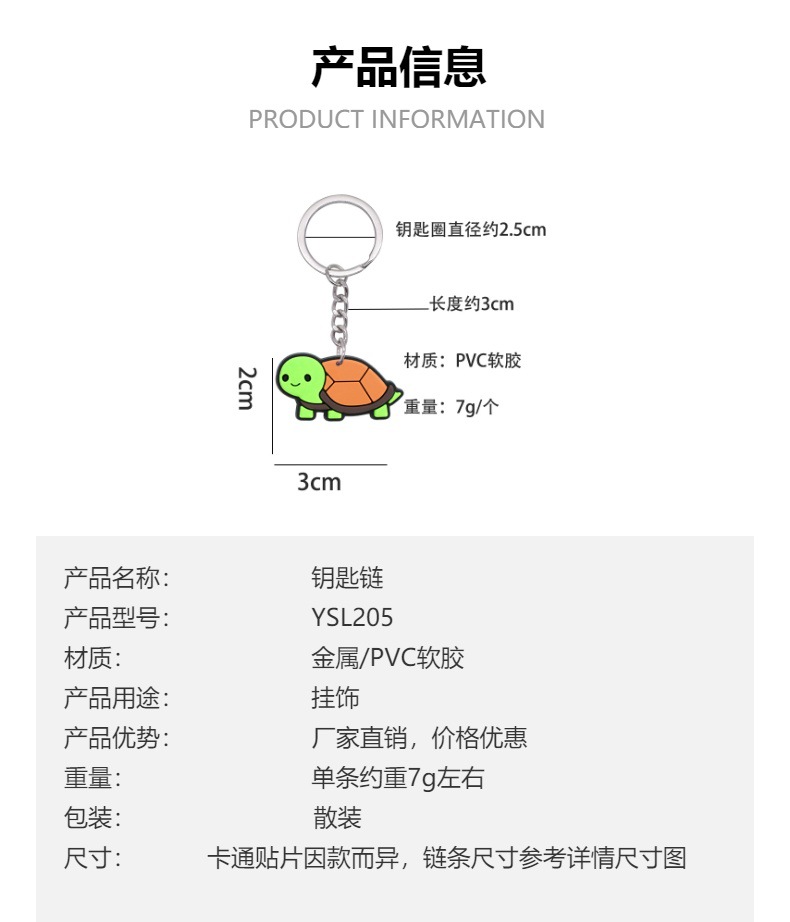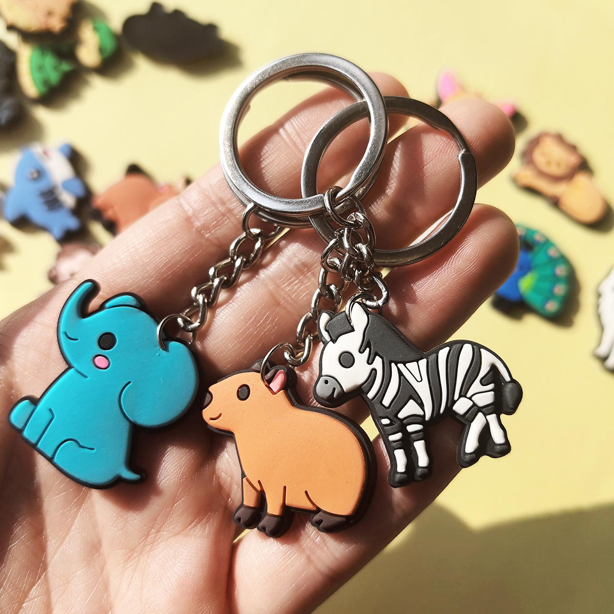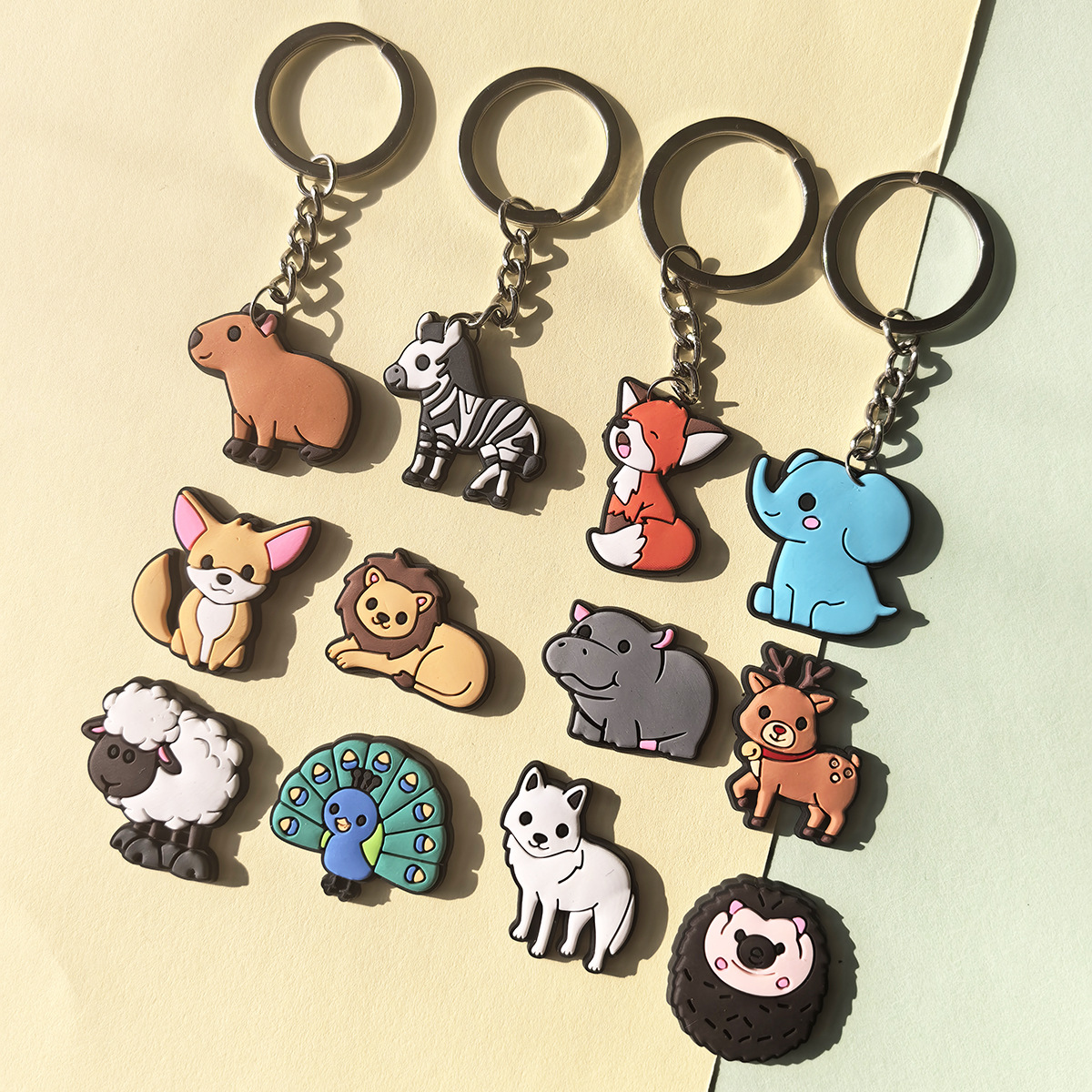 귀여운 만화 동물 열쇠고리 귀여운 인형 가방 장식 창의적인 작은 선물 주변 상품 PVC 열쇠고리 도매