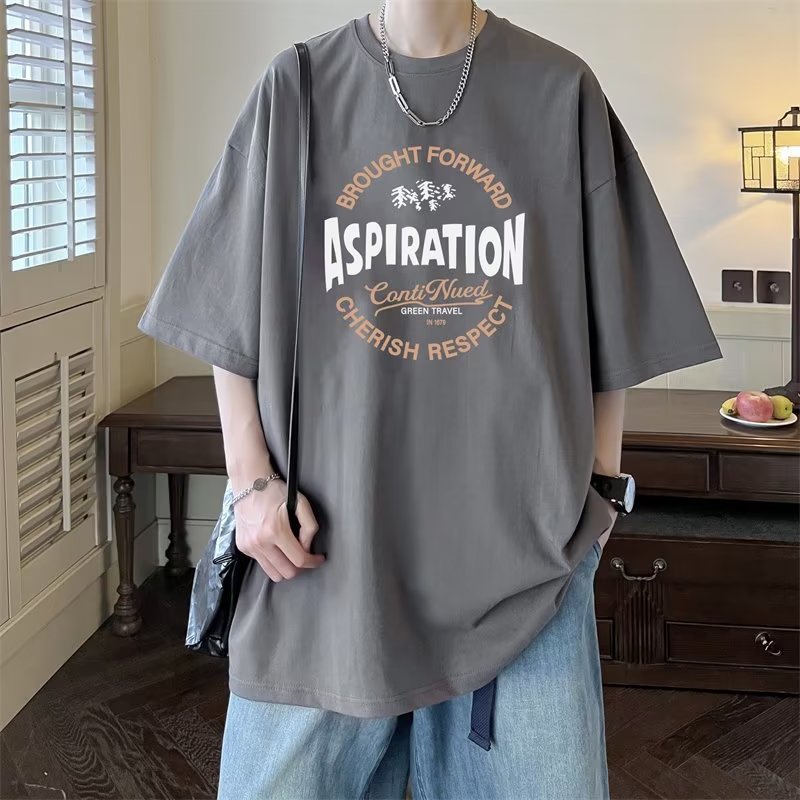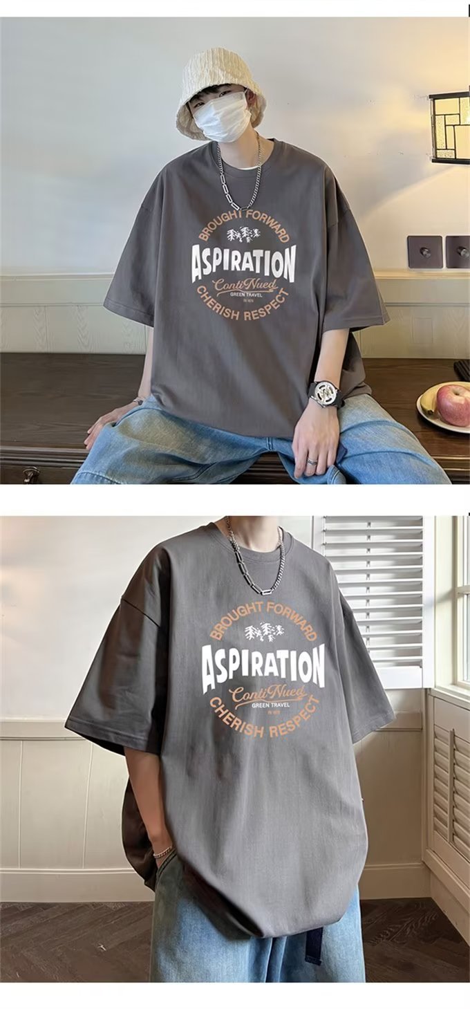 헤비 홍콩 스타일 빈티지 레터 프린트 반팔 티셔츠 커플 여름 루즈 프라이드 스트리트 인스 타 그램 스타일 올 매치 탑 남성용 맞춤형
