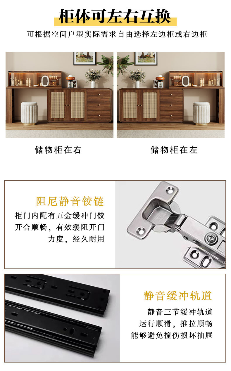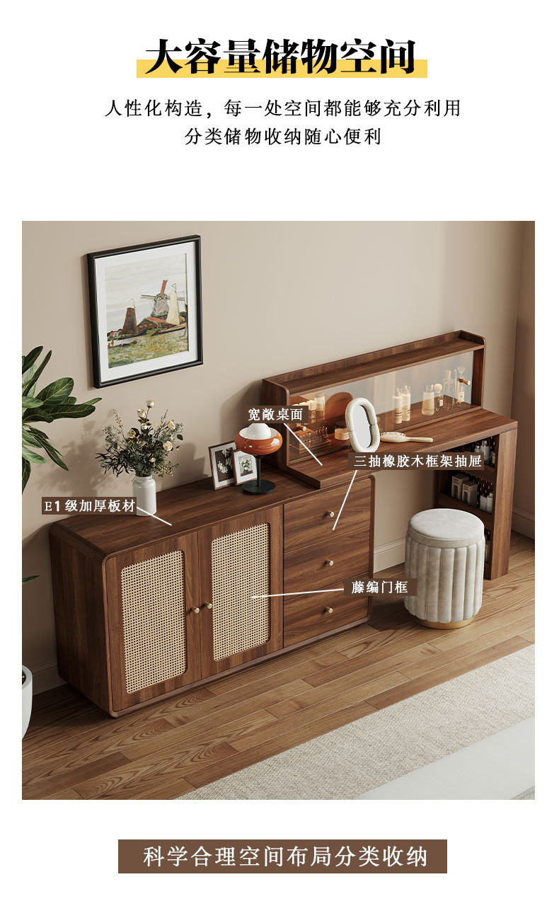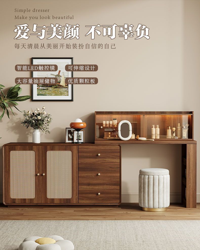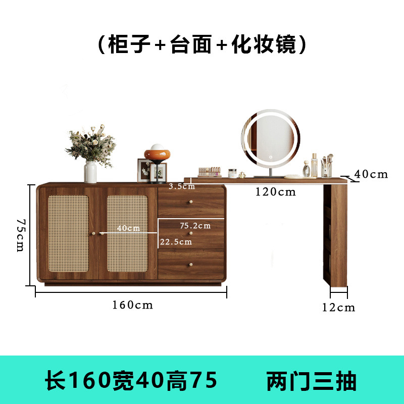 • 160cm 길이의 캐비닛 + 화장대 + 업그레이드된 수납선반