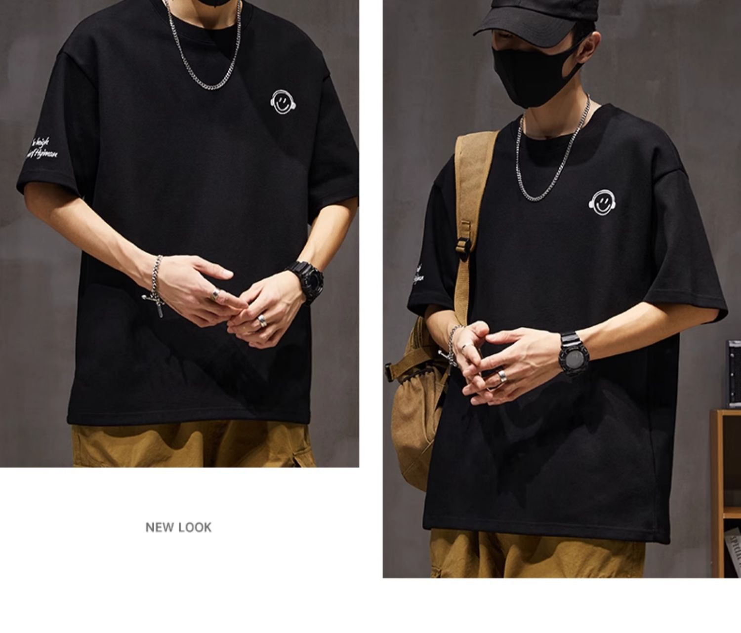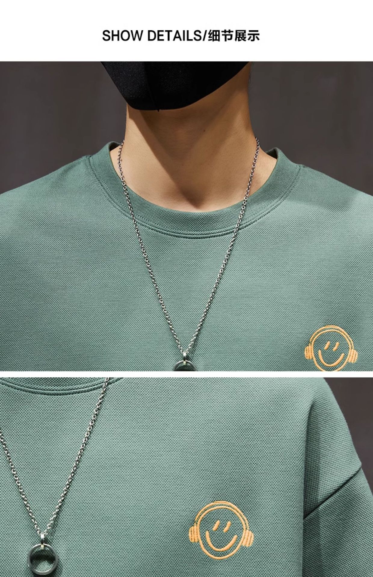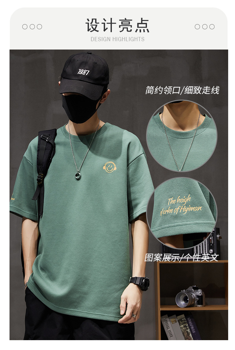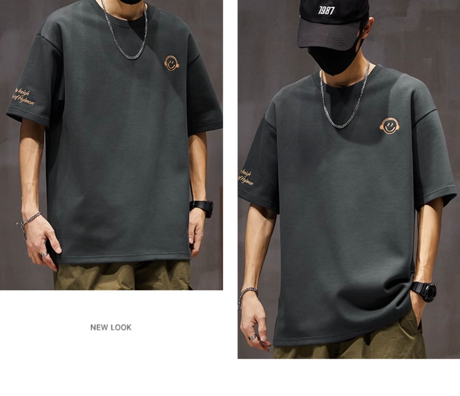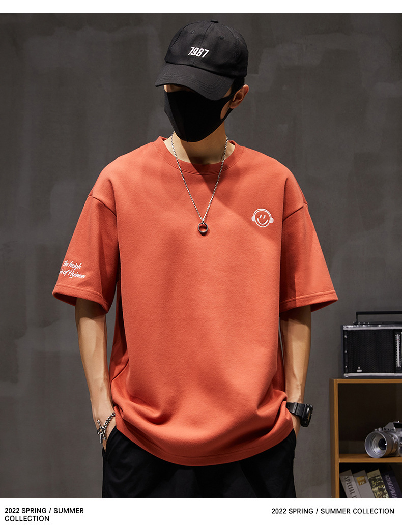 250g 헤비 쇼트 슬리브 티셔츠 남성 여름 패션 브랜드 느슨한 플러스 사이즈 크루 넥 스마일리 프린트 하프 슬리브 티셔츠 탑스토어 가기