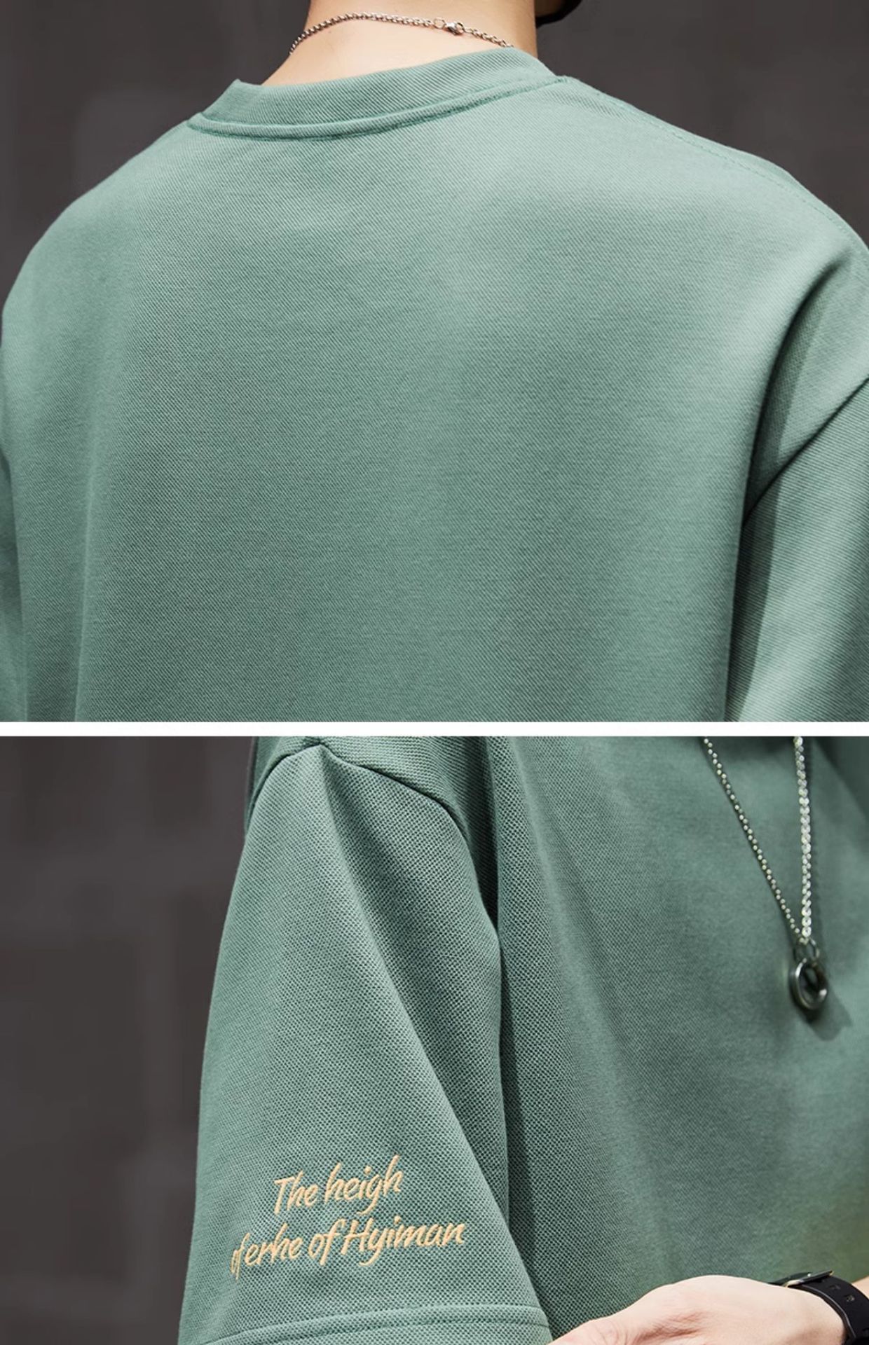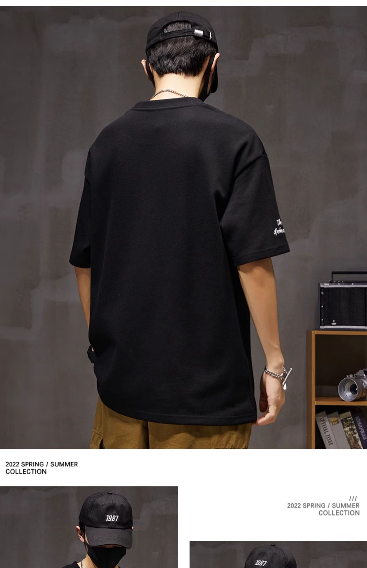 250g 헤비 쇼트 슬리브 티셔츠 남성 여름 패션 브랜드 느슨한 플러스 사이즈 크루 넥 스마일리 프린트 하프 슬리브 티셔츠 탑