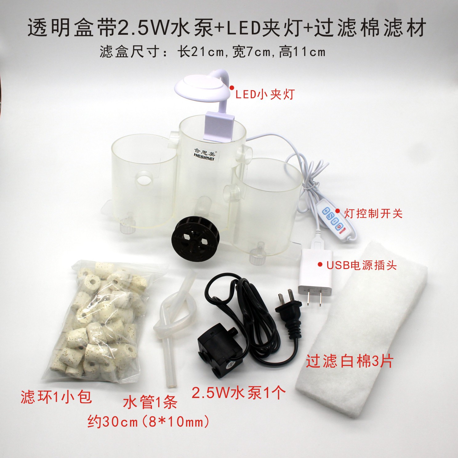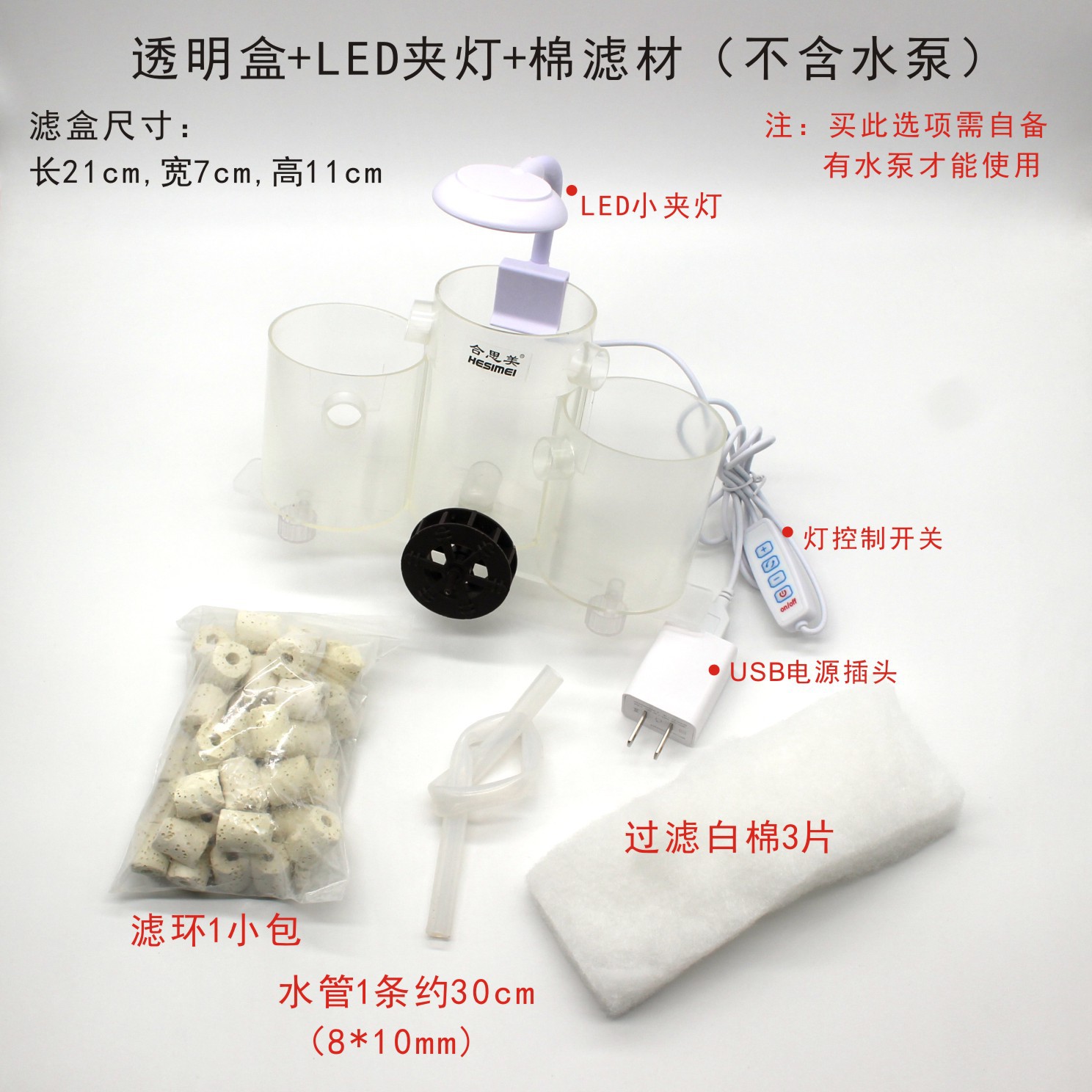 • 01 투명박스 + 2.5W 워터펌프 + 면필터재 + 소형 클립라이트