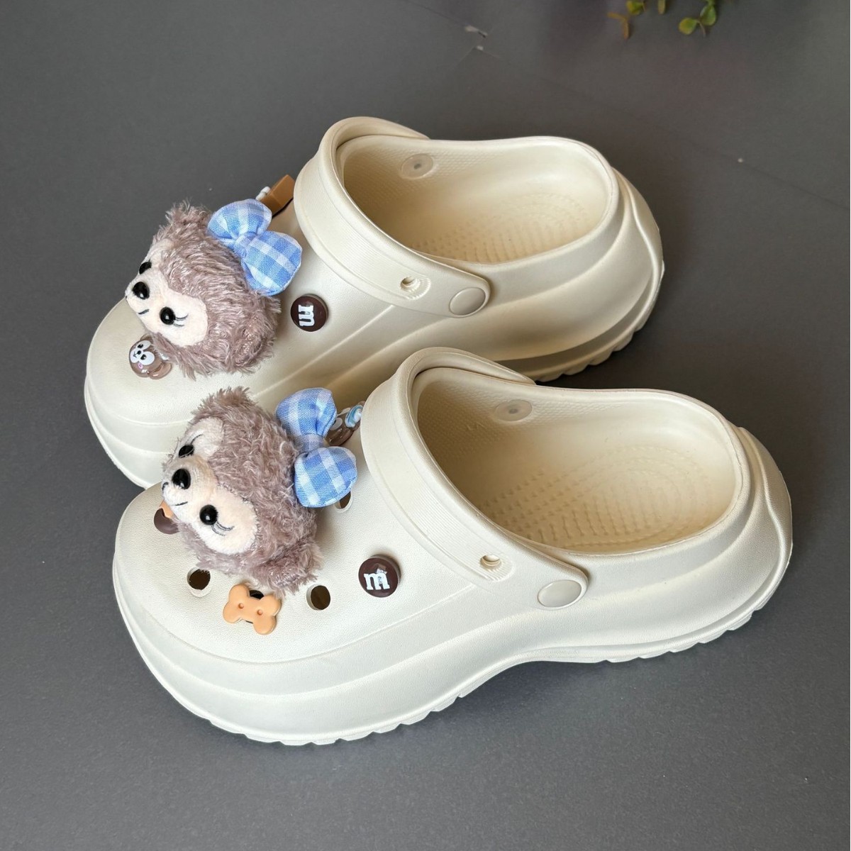 증가 된 7cm 구멍 신발 여름 여성 두꺼운 단독 슬립 온 느낌 Dung Baotou 슬리퍼 외부 슬립 통기성 비치 에바 샌들스토어 가기