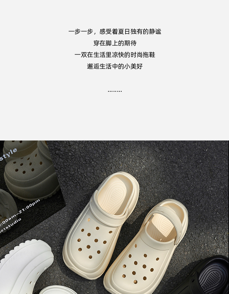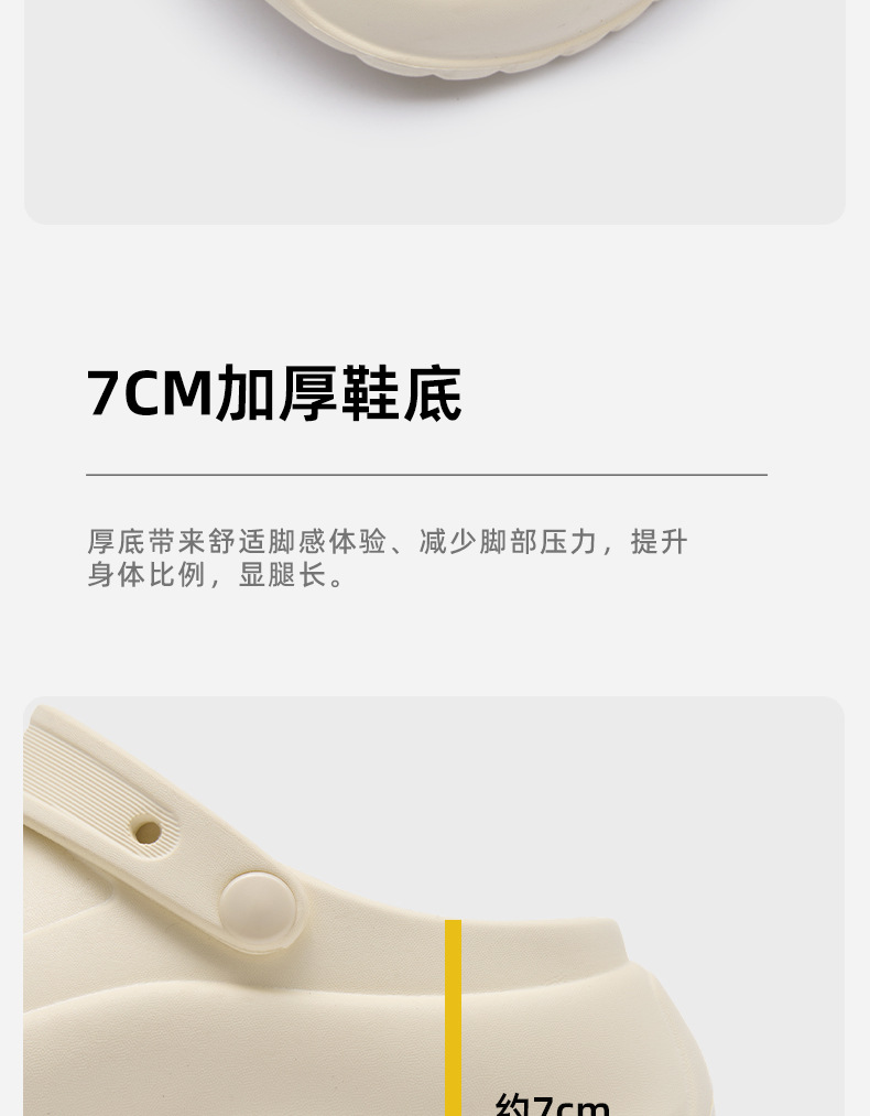 증가 된 7cm 구멍 신발 여름 여성 두꺼운 단독 슬립 온 느낌 Dung Baotou 슬리퍼 외부 슬립 통기성 비치 에바 샌들