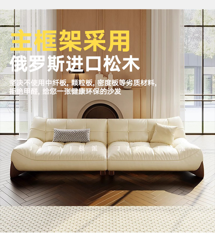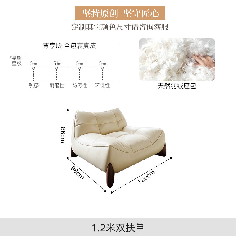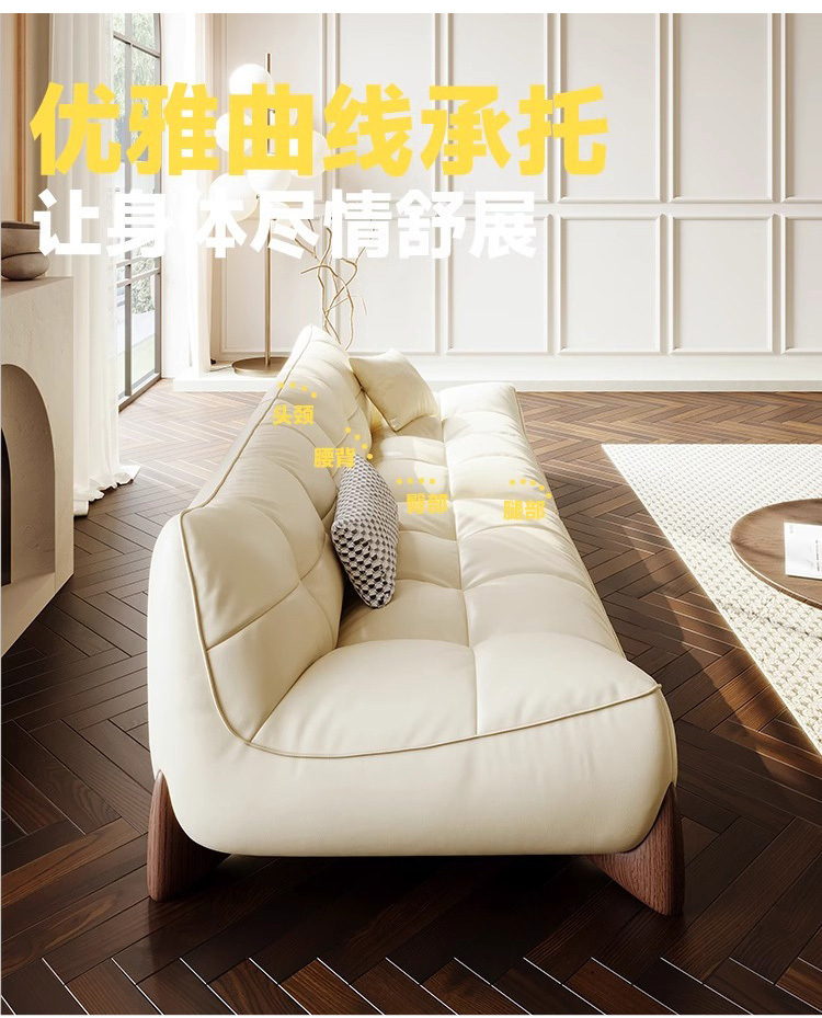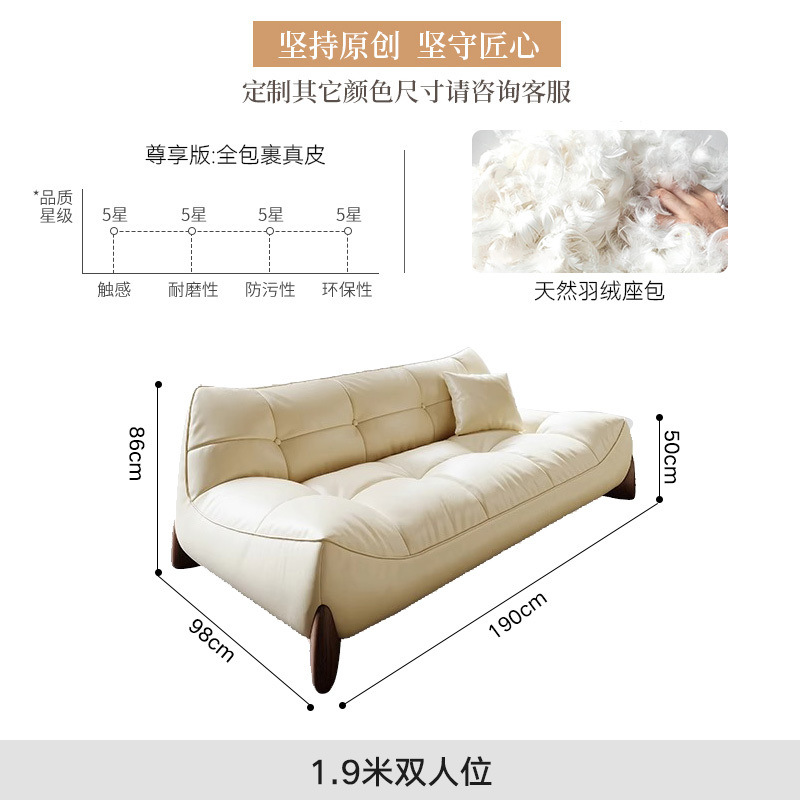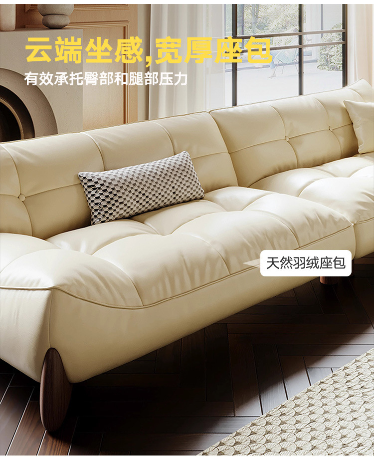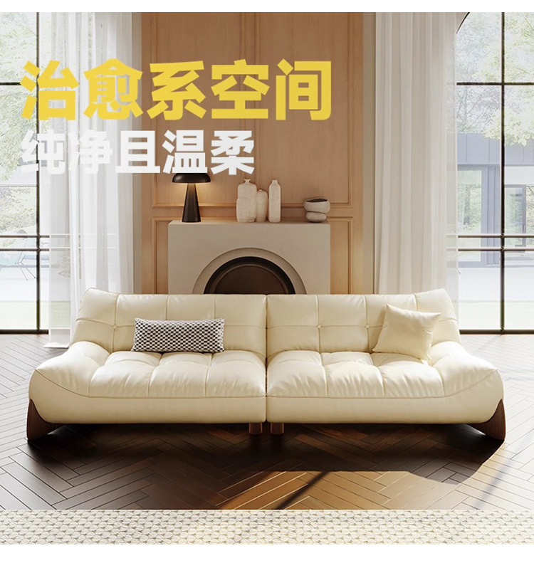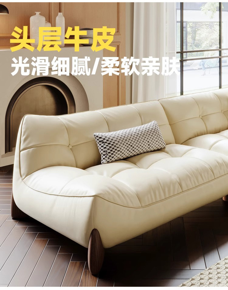 이탈리아 가죽 소파 프랑스 미니멀리스트 레트로 스타일 크고 작은 아파트 스트레이트 로우 탑 레이어 Cowhide 소파 거실스토어 가기