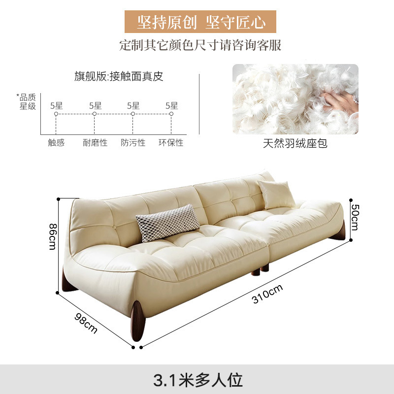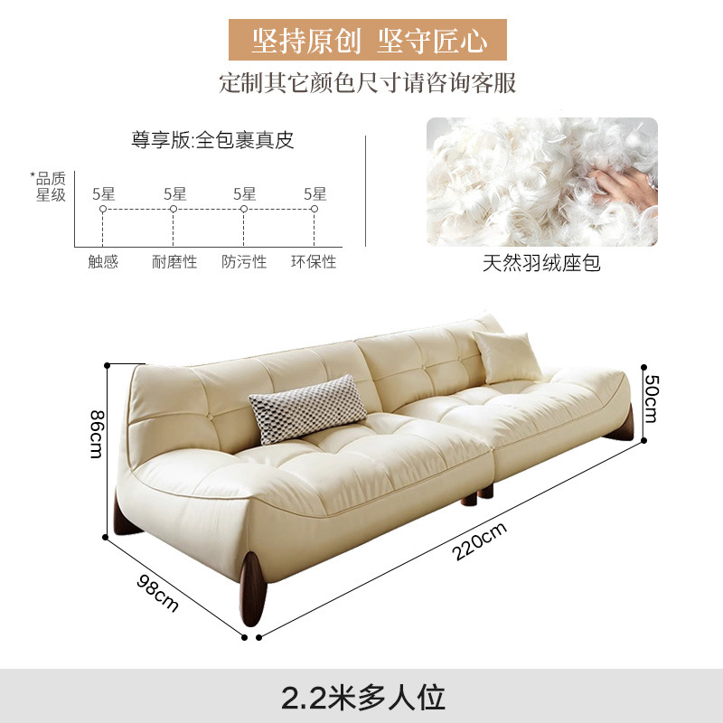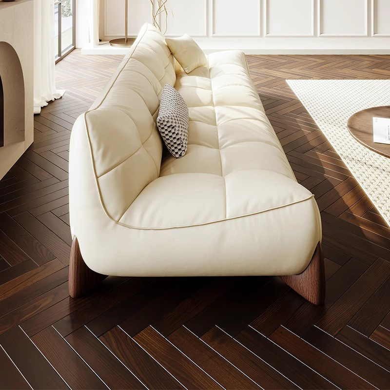 이탈리아 가죽 소파 프랑스 미니멀리스트 레트로 스타일 크고 작은 아파트 스트레이트 로우 탑 레이어 Cowhide 소파 거실