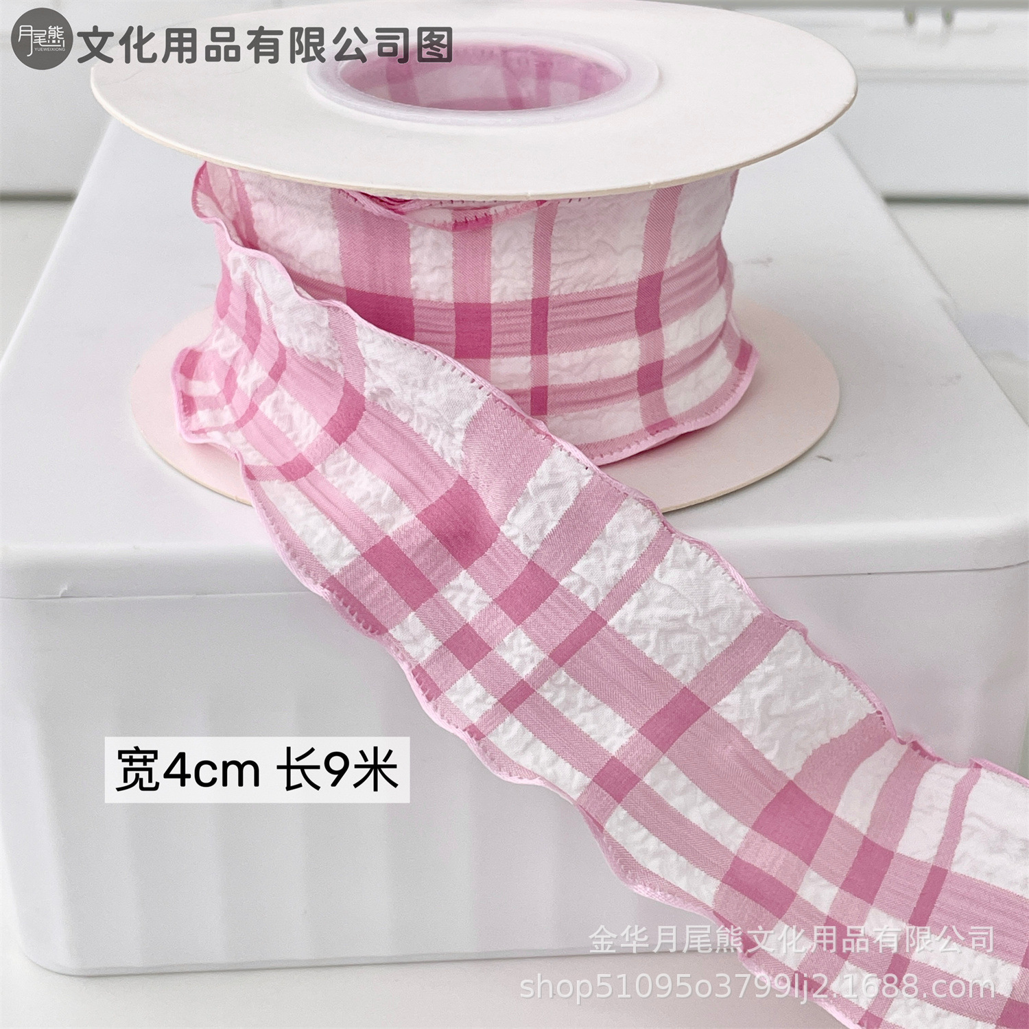 • 주름진 리본 핑크와 화이트 체크 무늬 1개