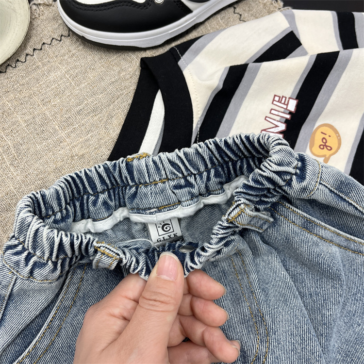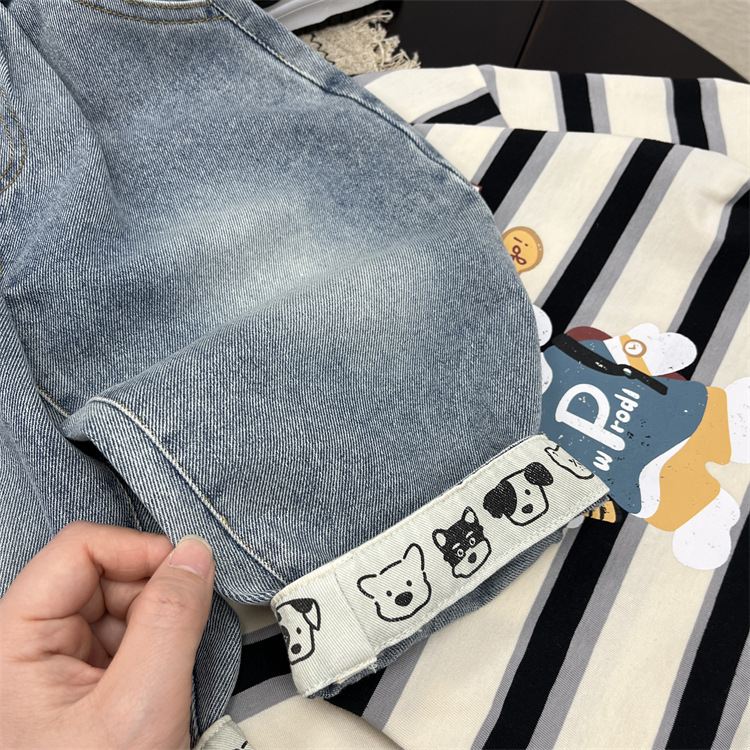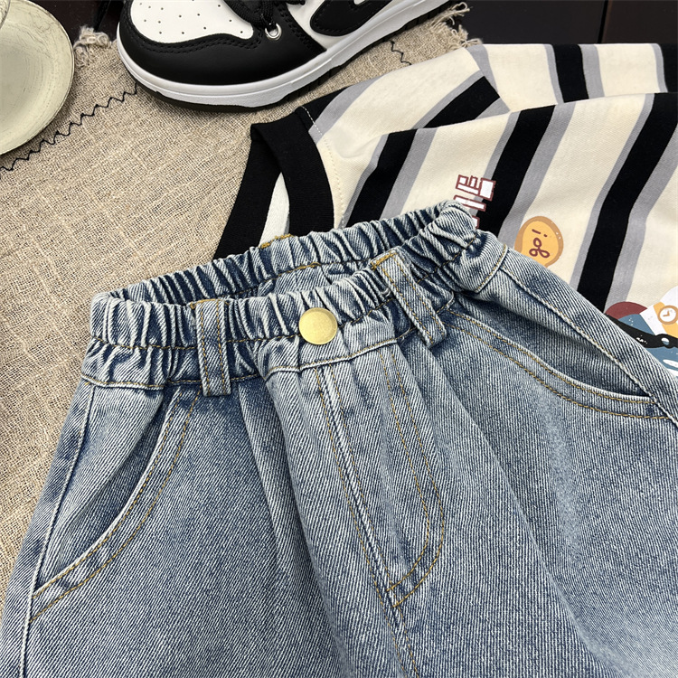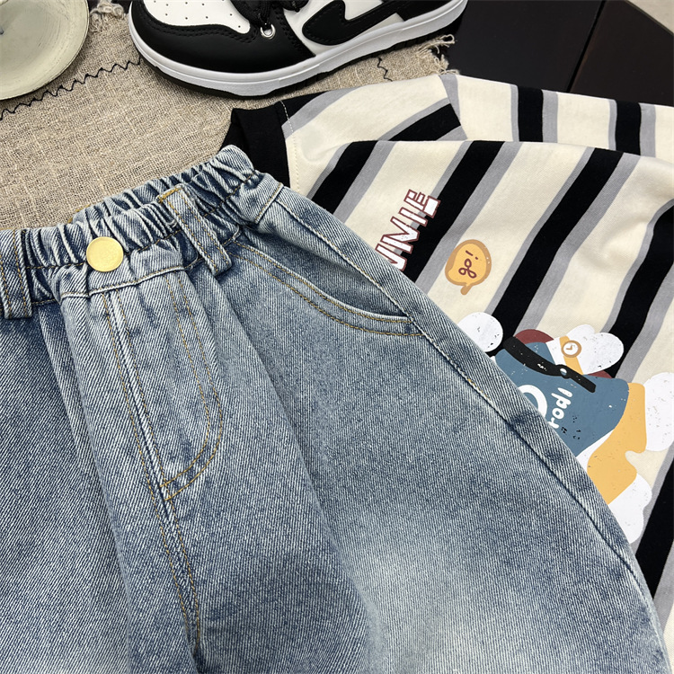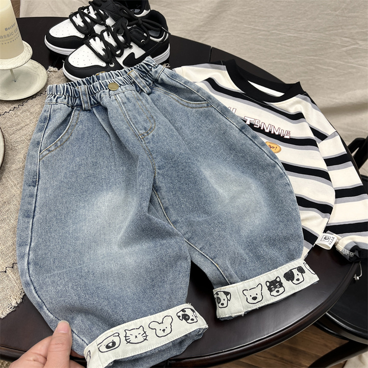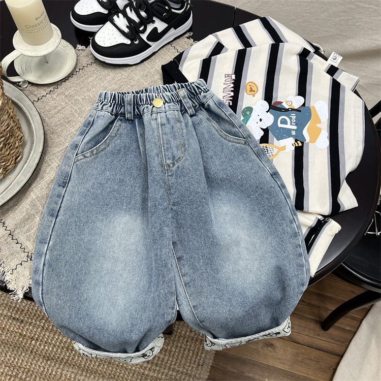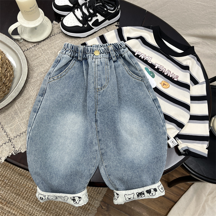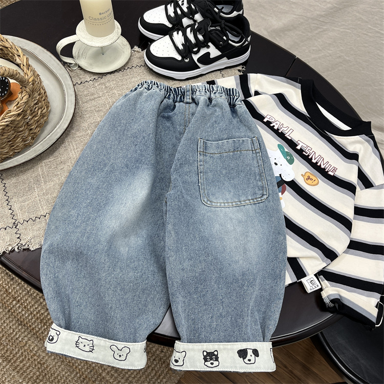 엄청나게 트렌디하고 부드럽고 귀엽습니다~ 한국 스타일 아동용 재미있는 프린트 플랜지 가을 청바지 아기 루즈한 스트레이트 캐주얼 팬츠