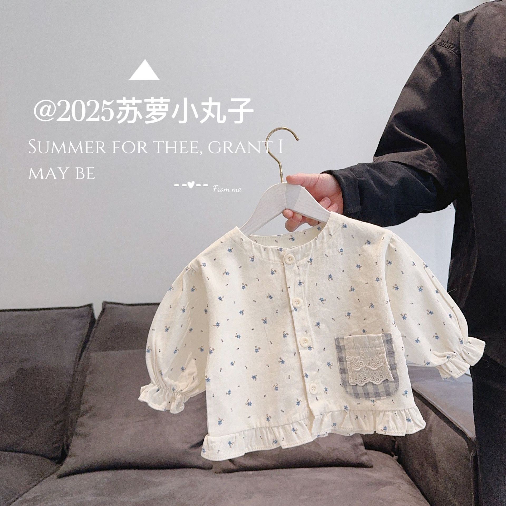 봄 2025 0-3 세 소녀 어린이 한국 귀여운 서양식 인터넷 꽃 카디건 탑과 긴 소매 코트 축하스토어 가기