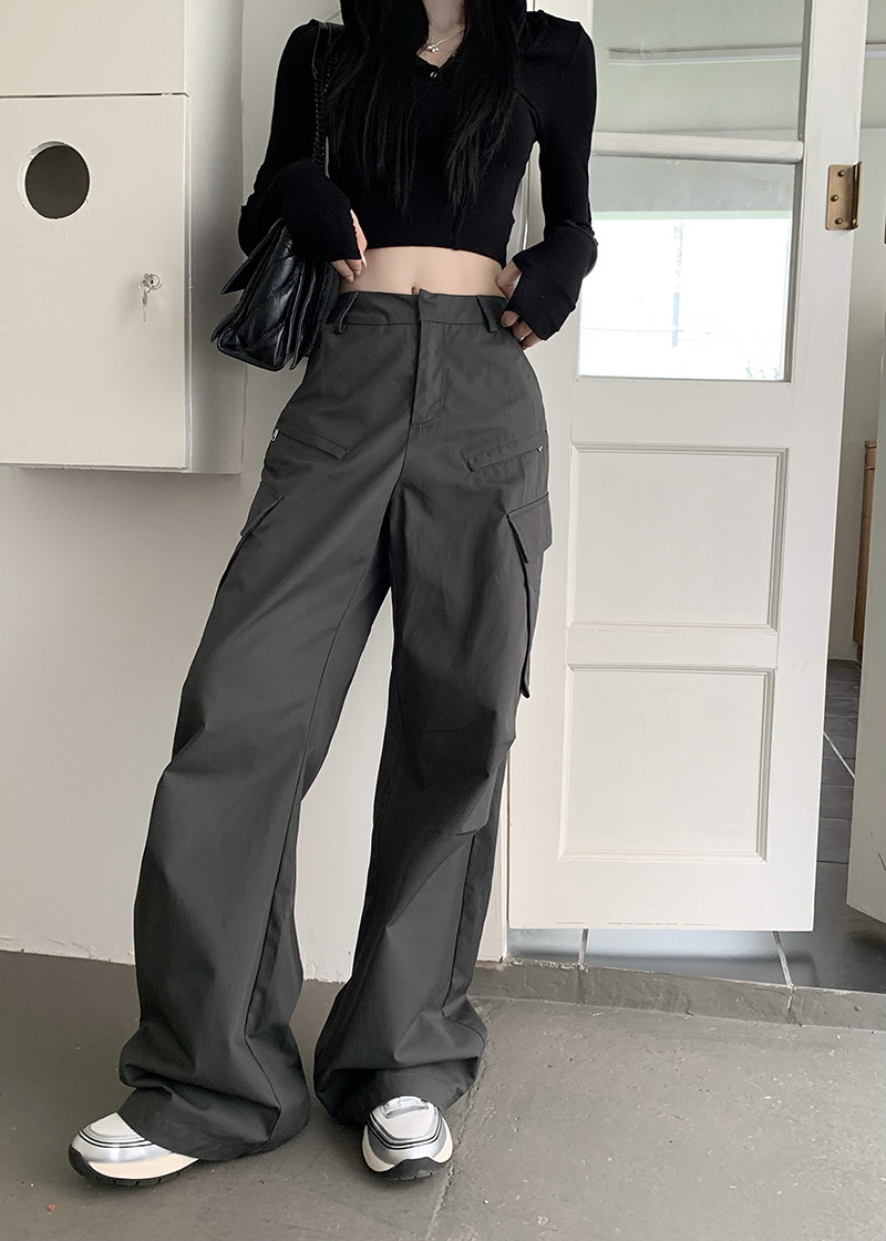 미국 복고풍 작업복 캐주얼 바지 여성용 봄철 트렌디 높은 허리 느슨한 디자인 센스 스트레이트 다리 와이드 다리 바지스토어 가기