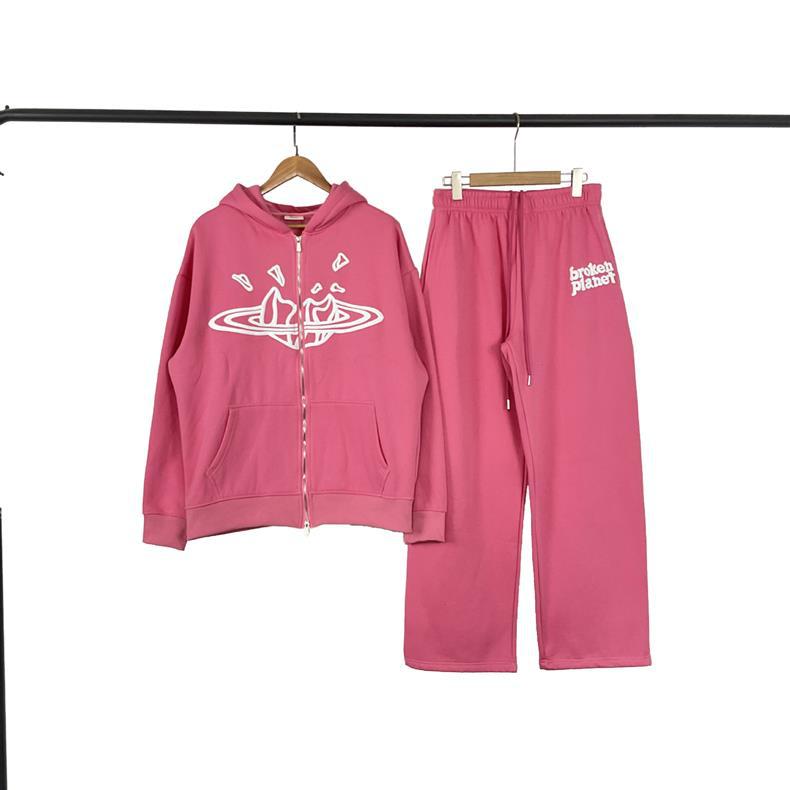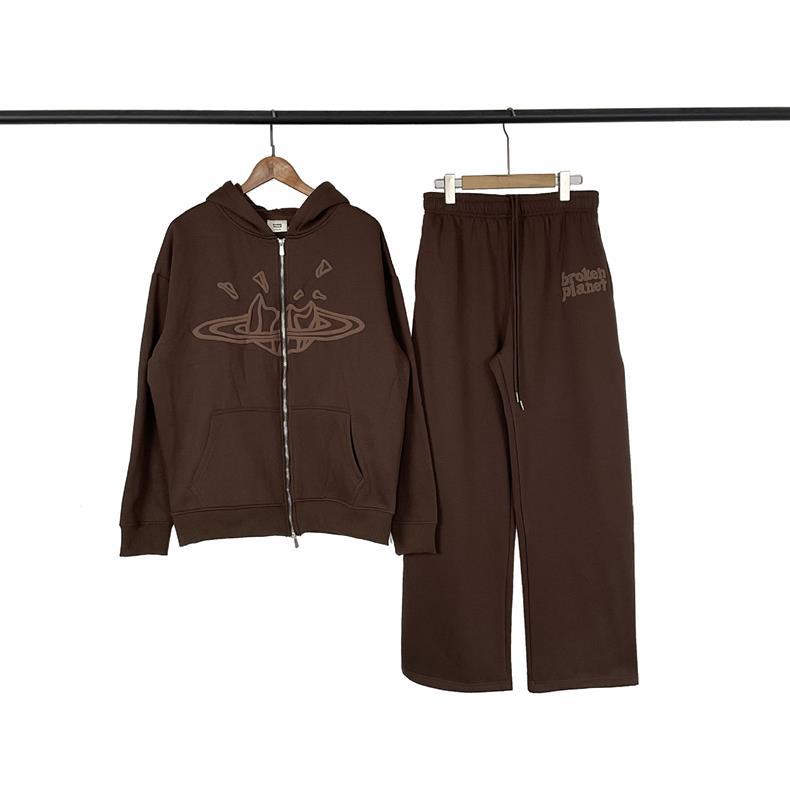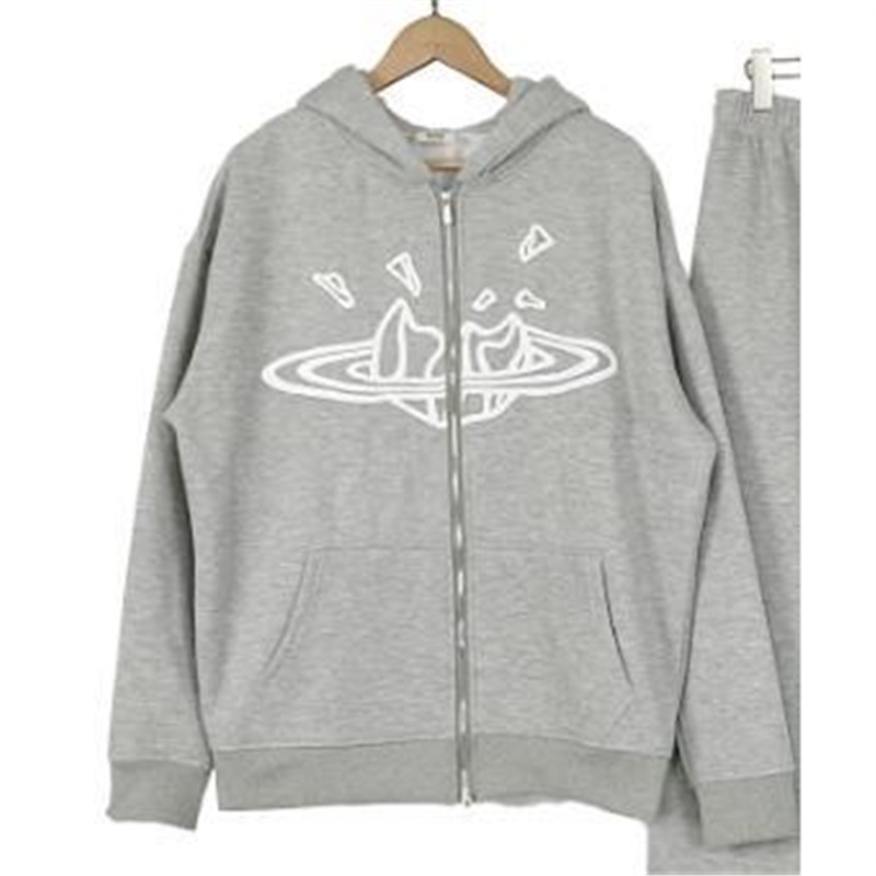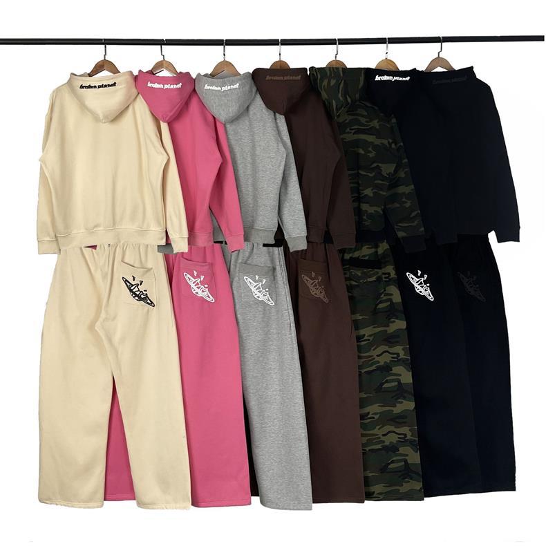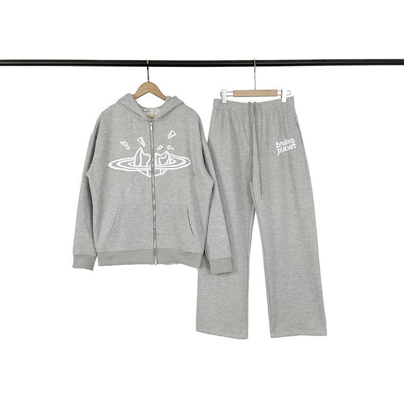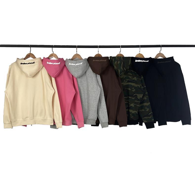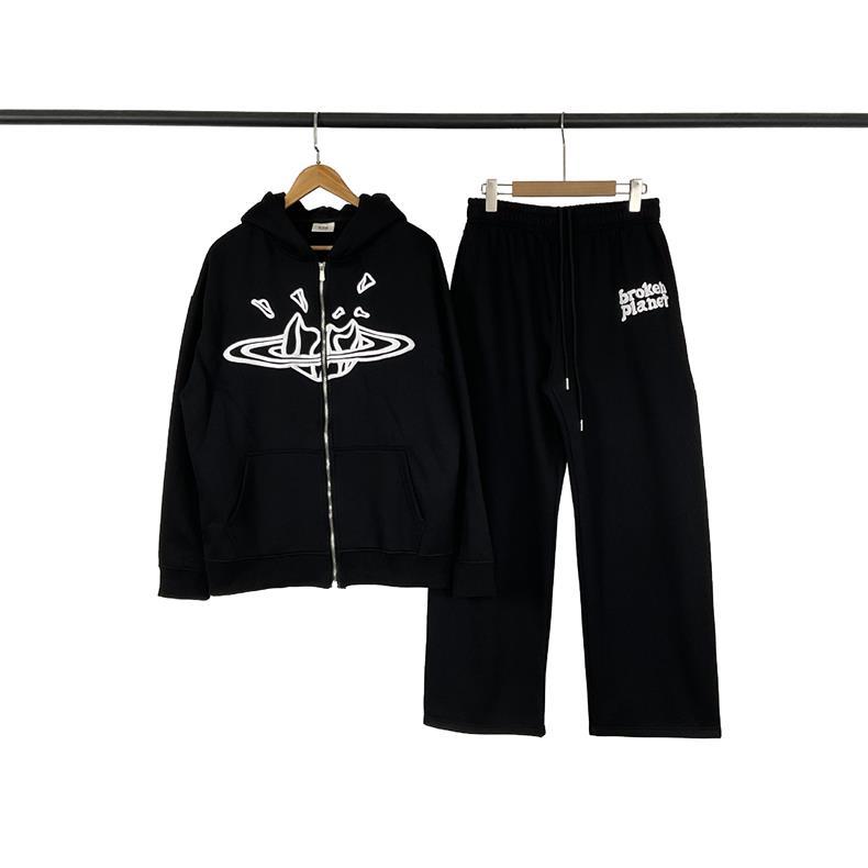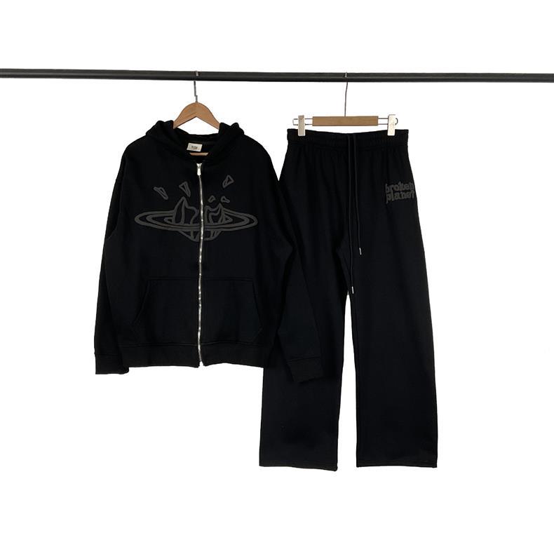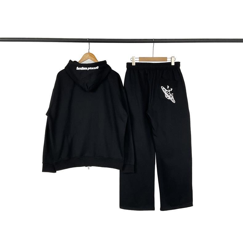 깨진 행성 유행 브랜드 편지 거품 인쇄 후드 느슨한 캐주얼 기모 스웨터 세트 국경스토어 가기