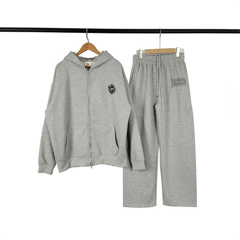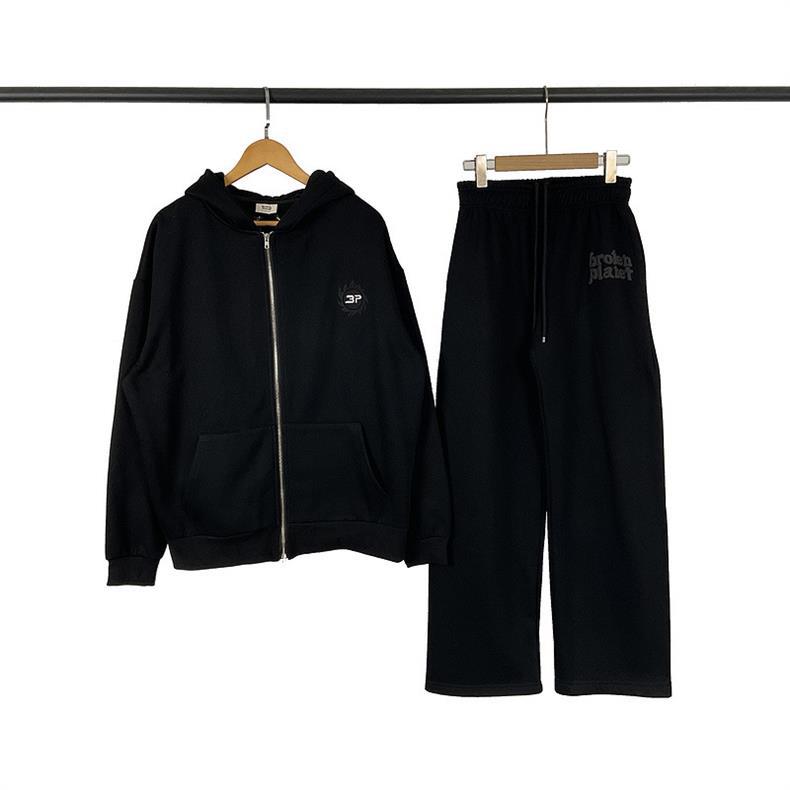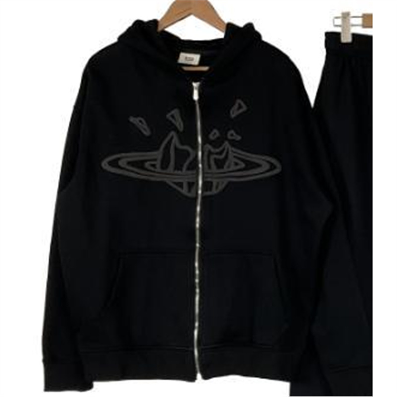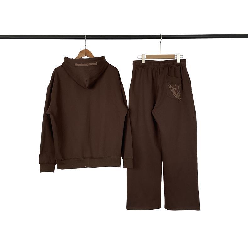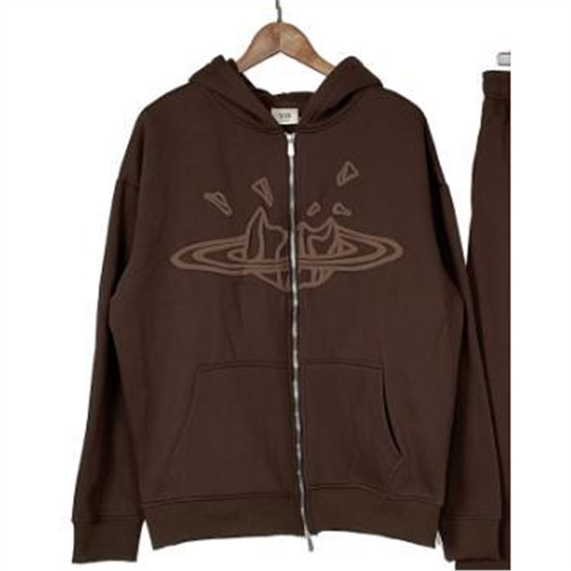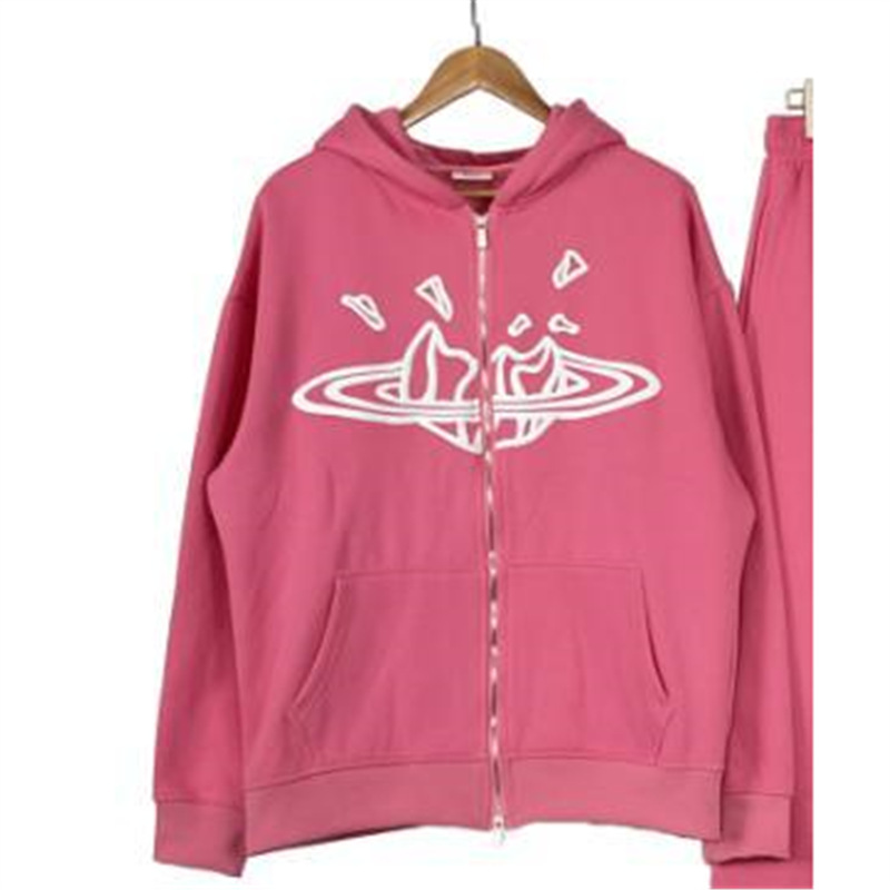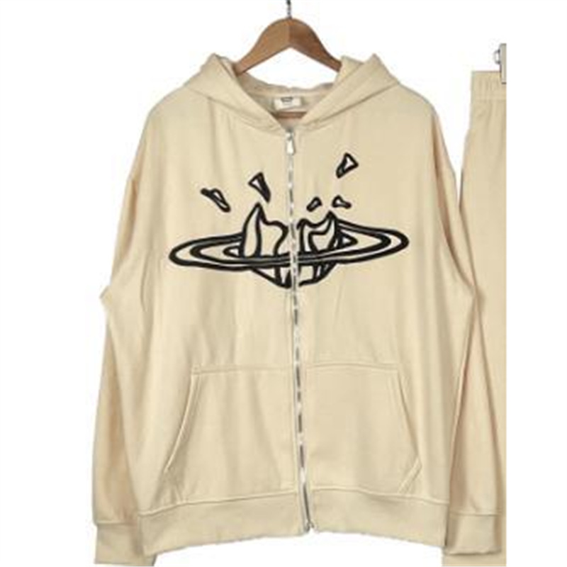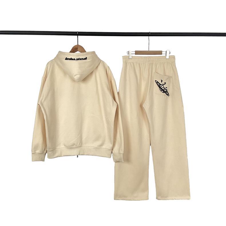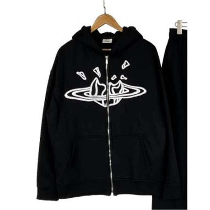깨진 행성 유행 브랜드 편지 거품 인쇄 후드 느슨한 캐주얼 기모 스웨터 세트 국경스토어 가기