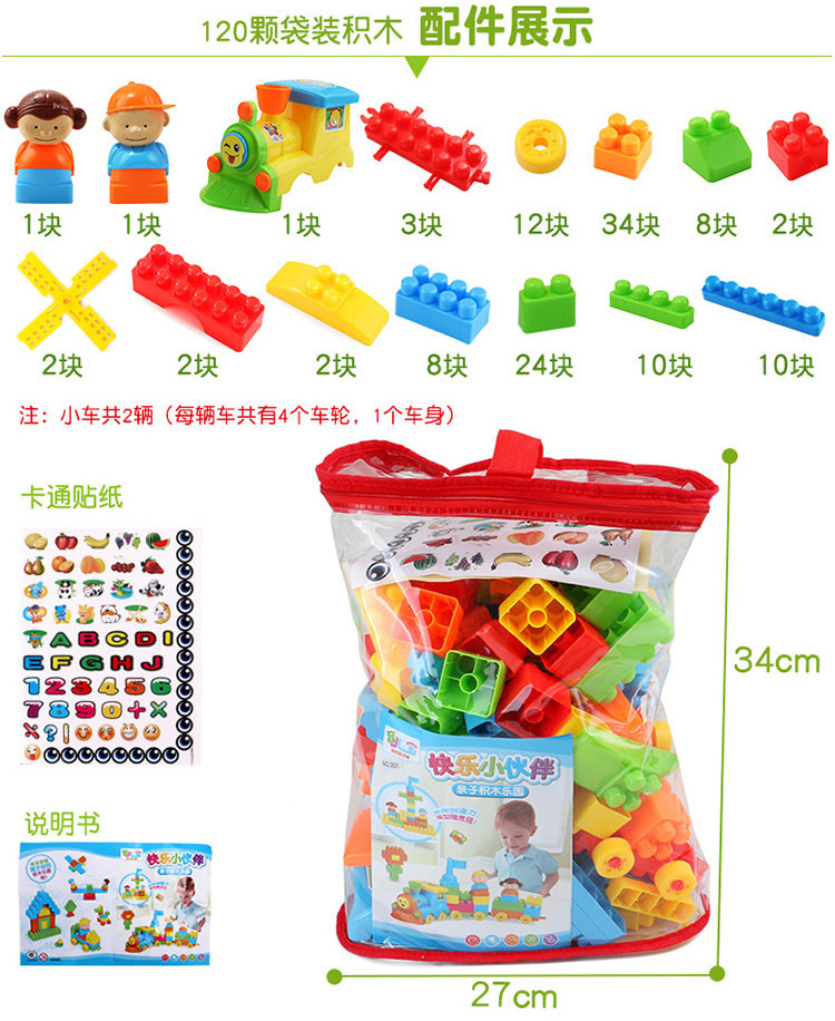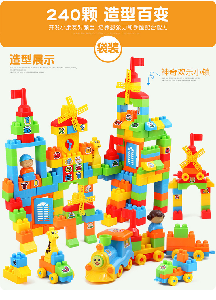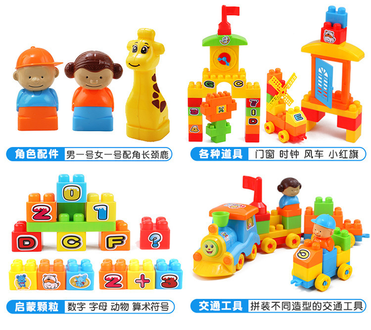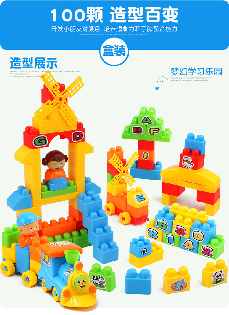 어린이 대형 과립 플라스틱 건물 블록 장난감 아기 조기 교육 조립 건물 블록 1-3-6 세스토어 가기