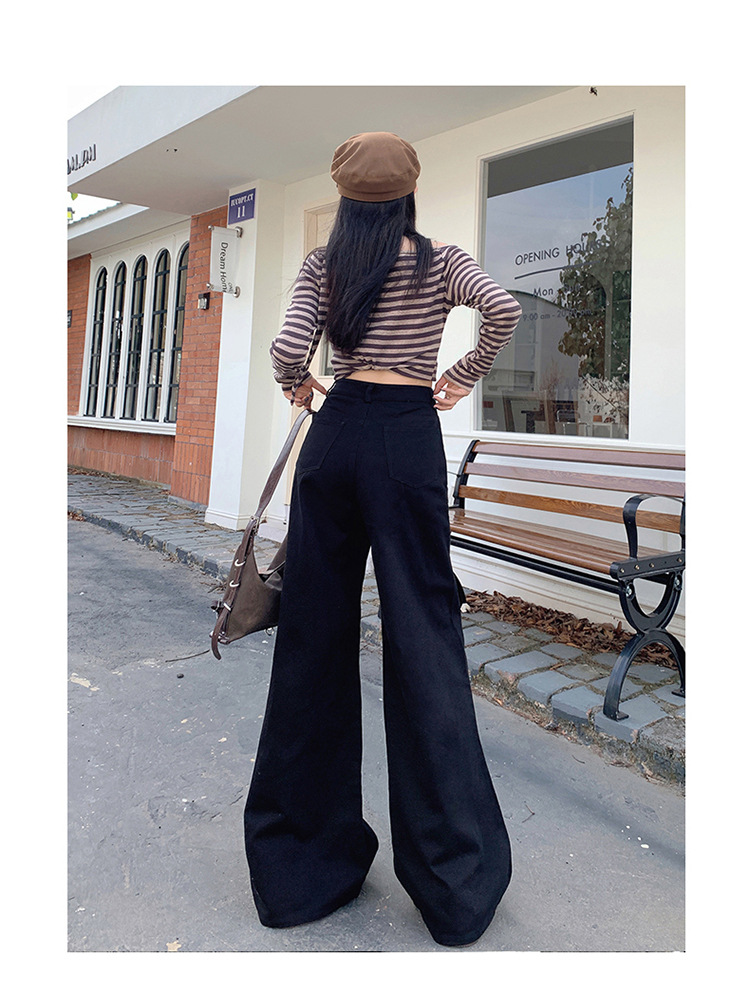 YC & 레트로 높은 허리 느슨한 넓은 다리 바지 새로운 올 매치 트레일 플레어 팬츠 청바지 및 긴 바지스토어 가기