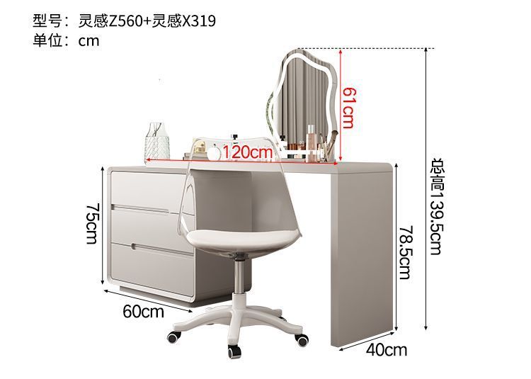 • 서랍장 3개 60cm + 화장대 [거울 + 스툴 포함]