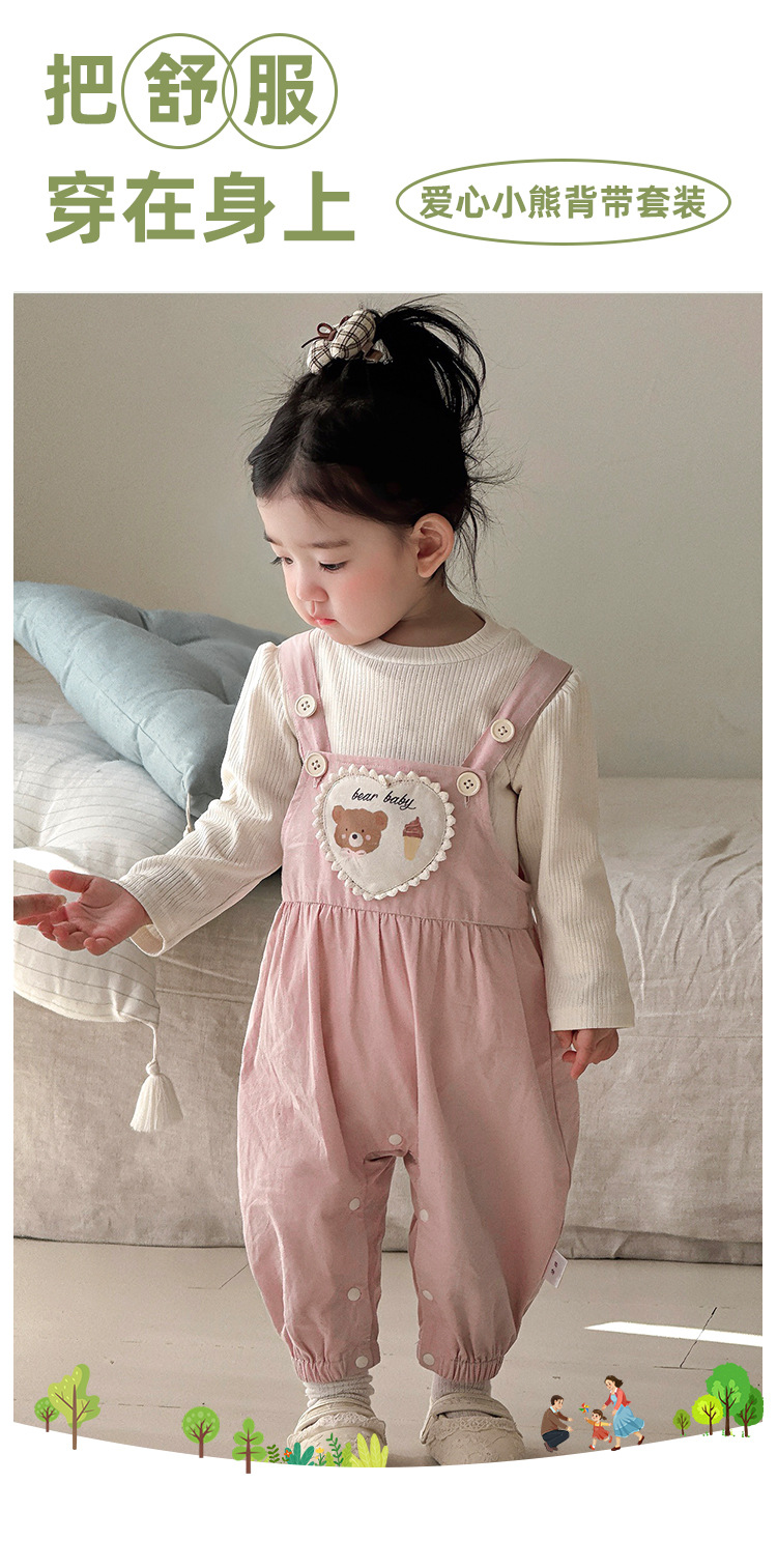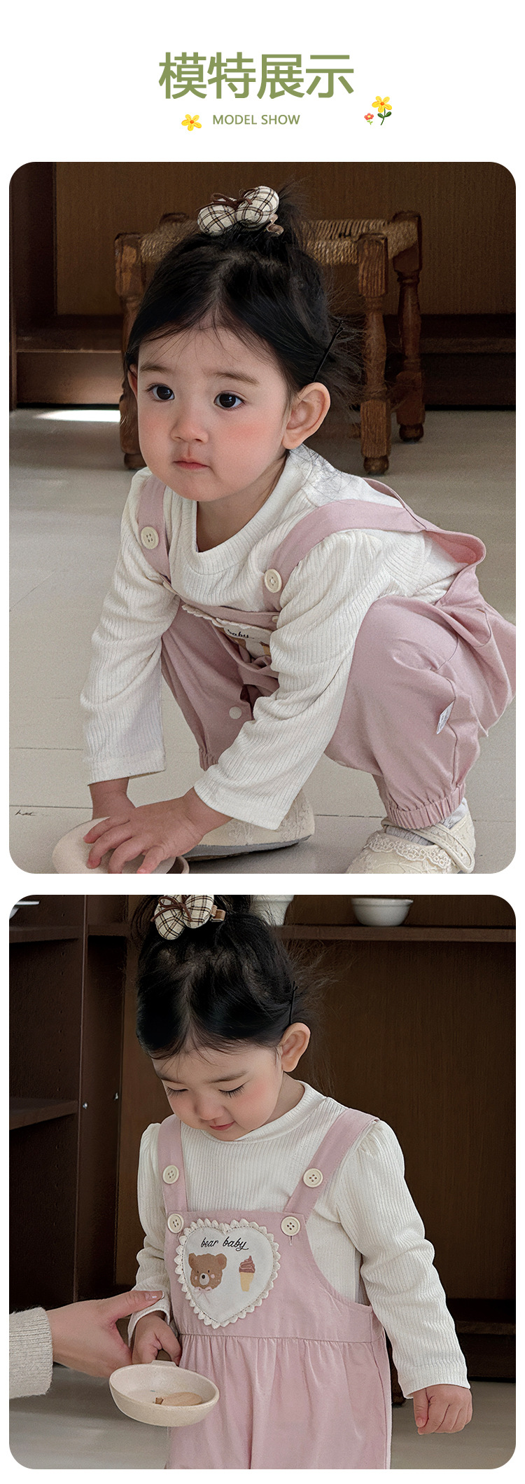 여아 멜빵바지 세트 가을 신상 스타일리쉬 여아 베이비 레이어드 셔츠 가을 아기옷 투피스 세트 A급
