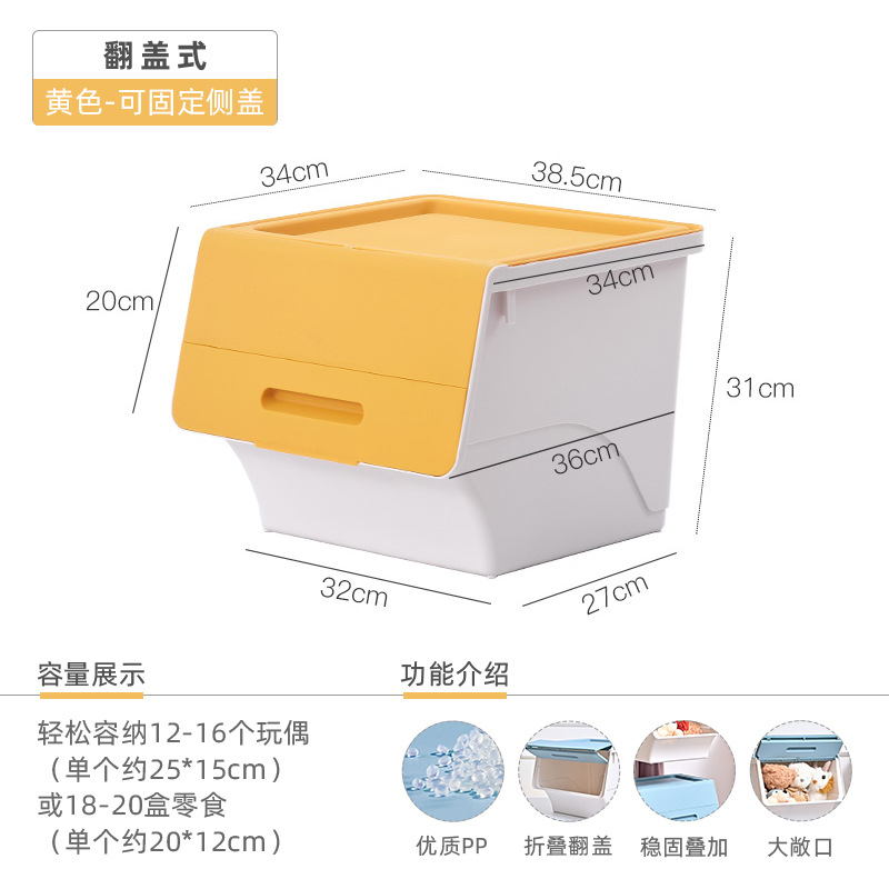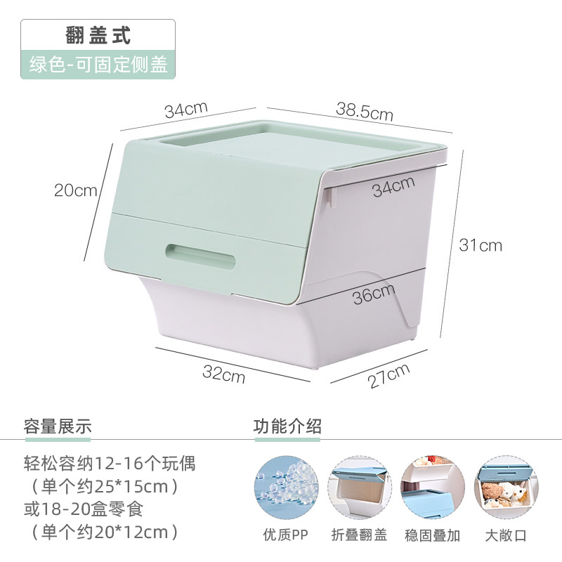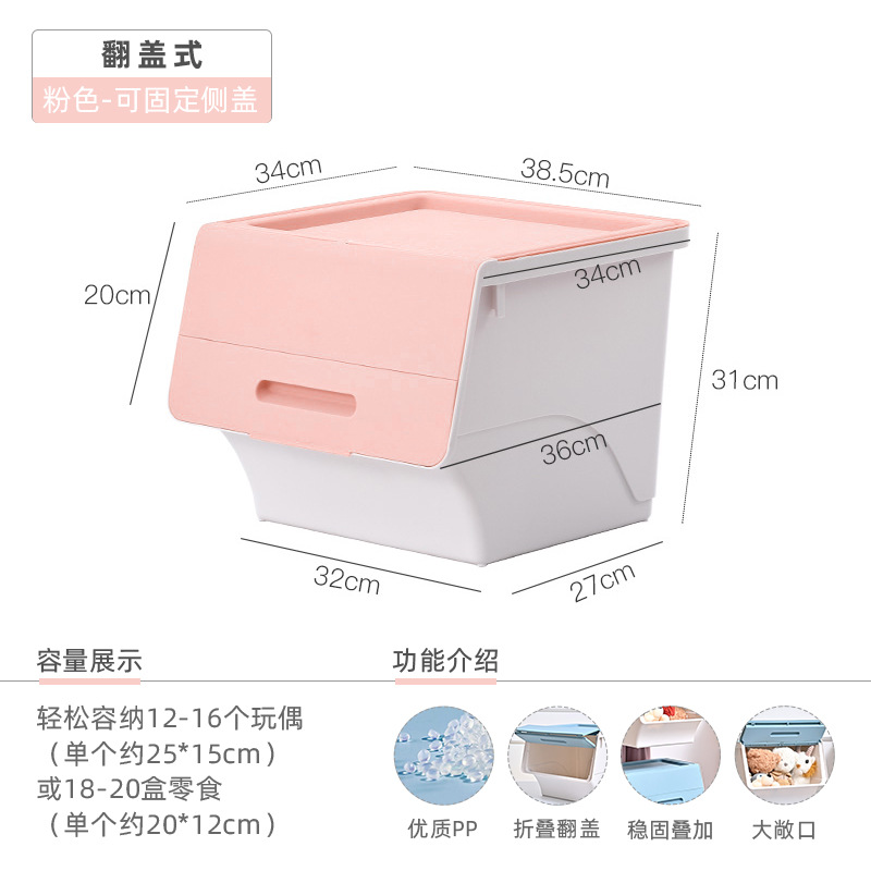 쌓을 수있는 어린이 장난감 수분 방지 보관 상자 옷장 주최자 가정용 플립 커버 방진 스낵 보관 상자스토어 가기