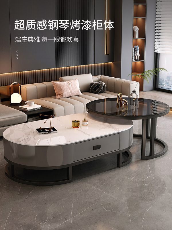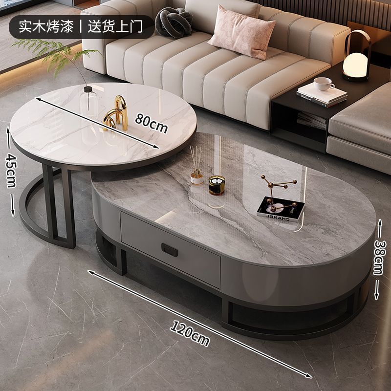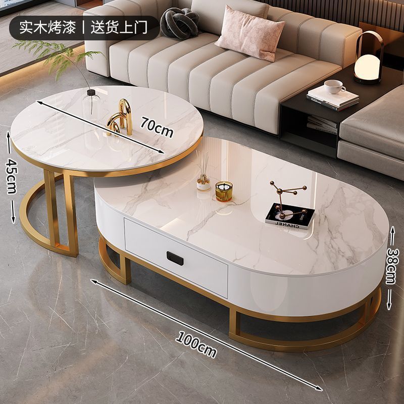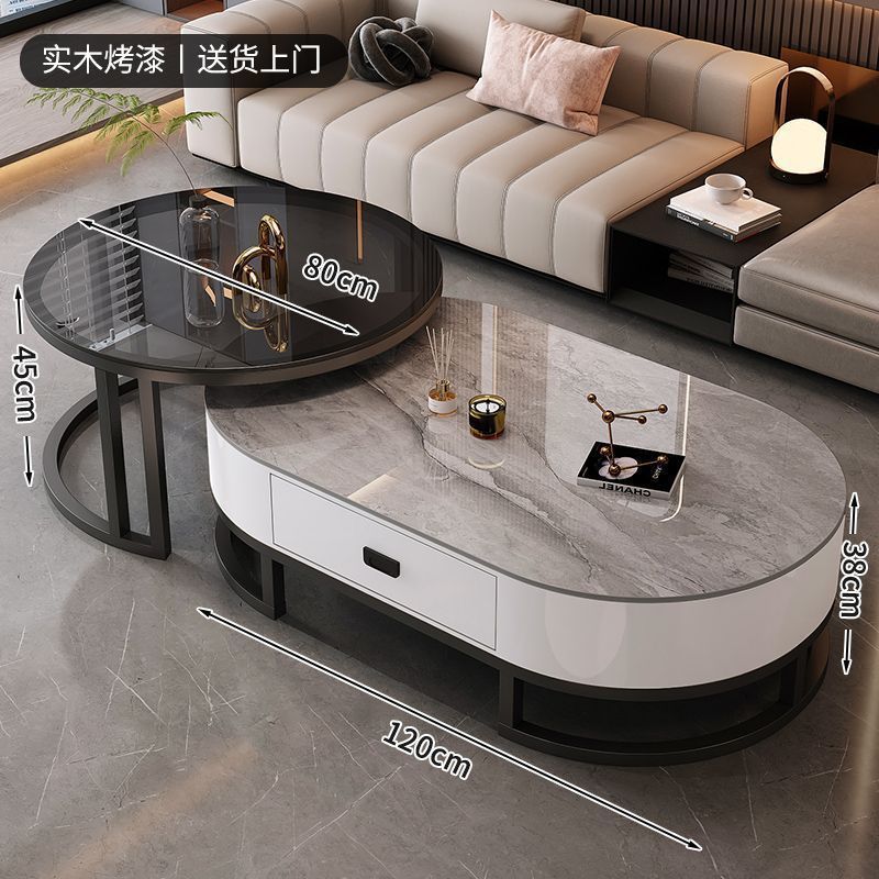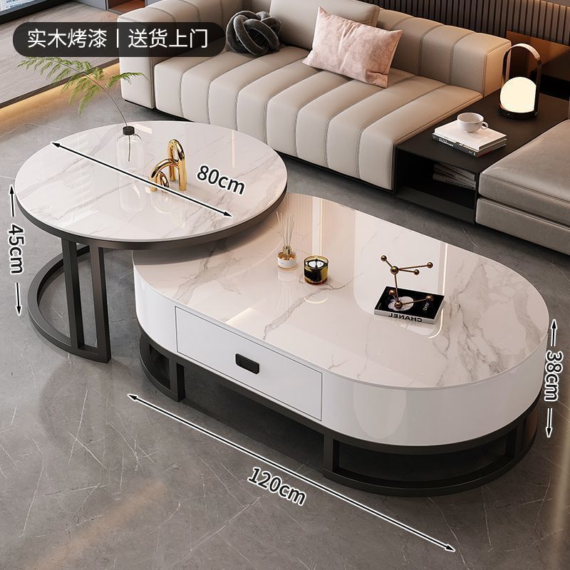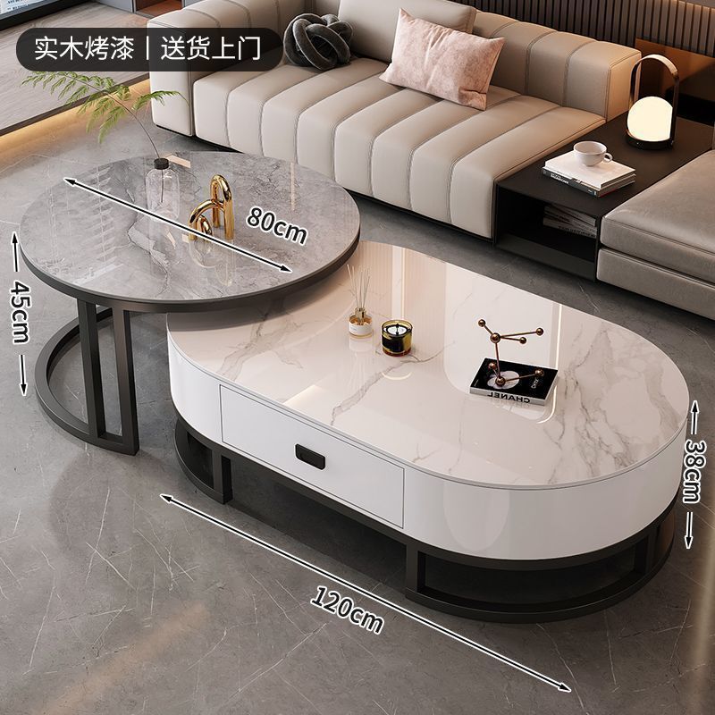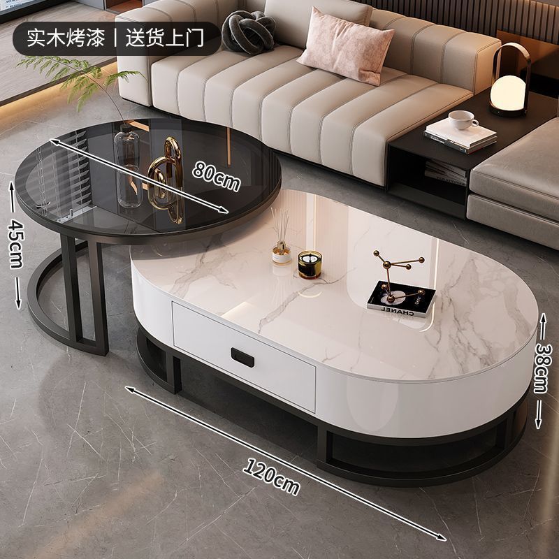 베이킹 페인트 솔리드 우드 커피 테이블 거실 홈 새로운 라운드 티 테이블 현대 간단한 작은 아파트 인터넷 유명 록 플레이트 커피 테이블스토어 가기