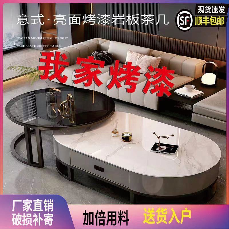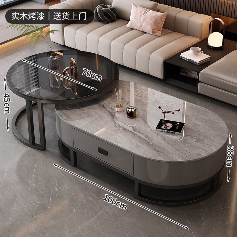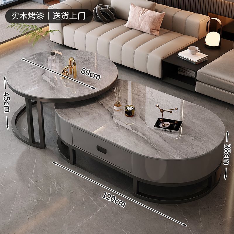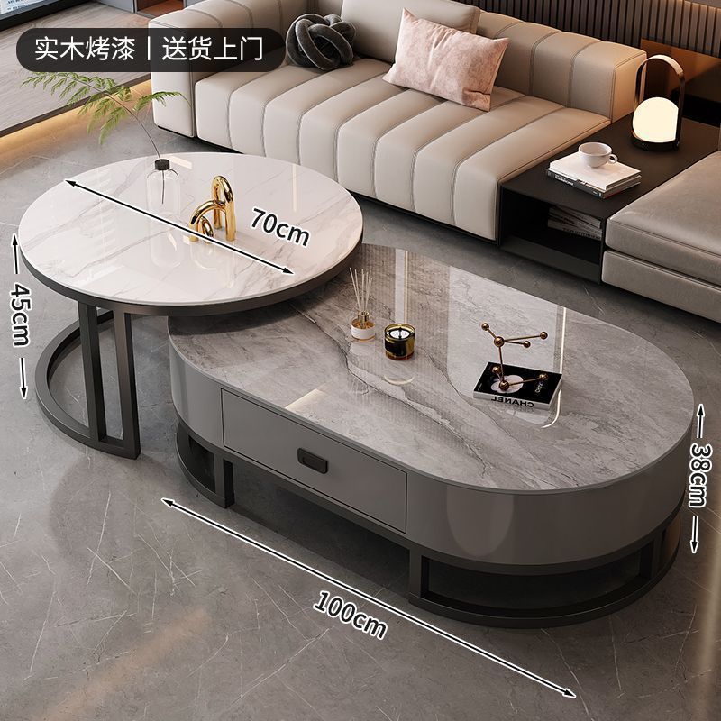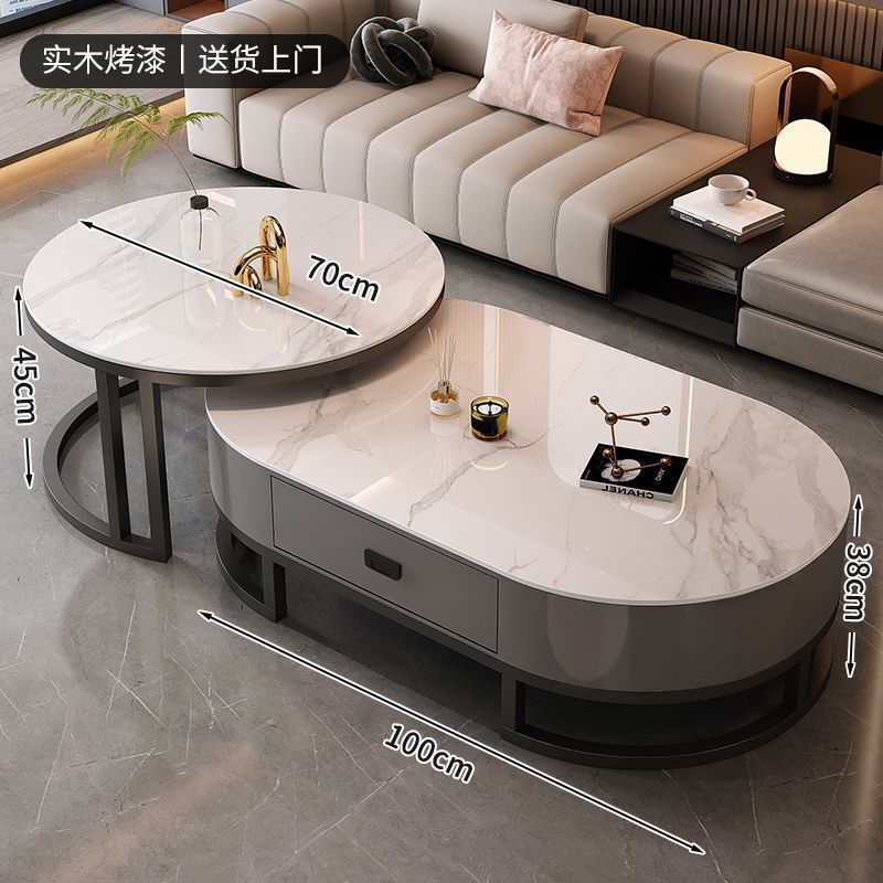 베이킹 페인트 솔리드 우드 커피 테이블 거실 홈 새로운 라운드 티 테이블 현대 간단한 작은 아파트 인터넷 유명 록 플레이트 커피 테이블