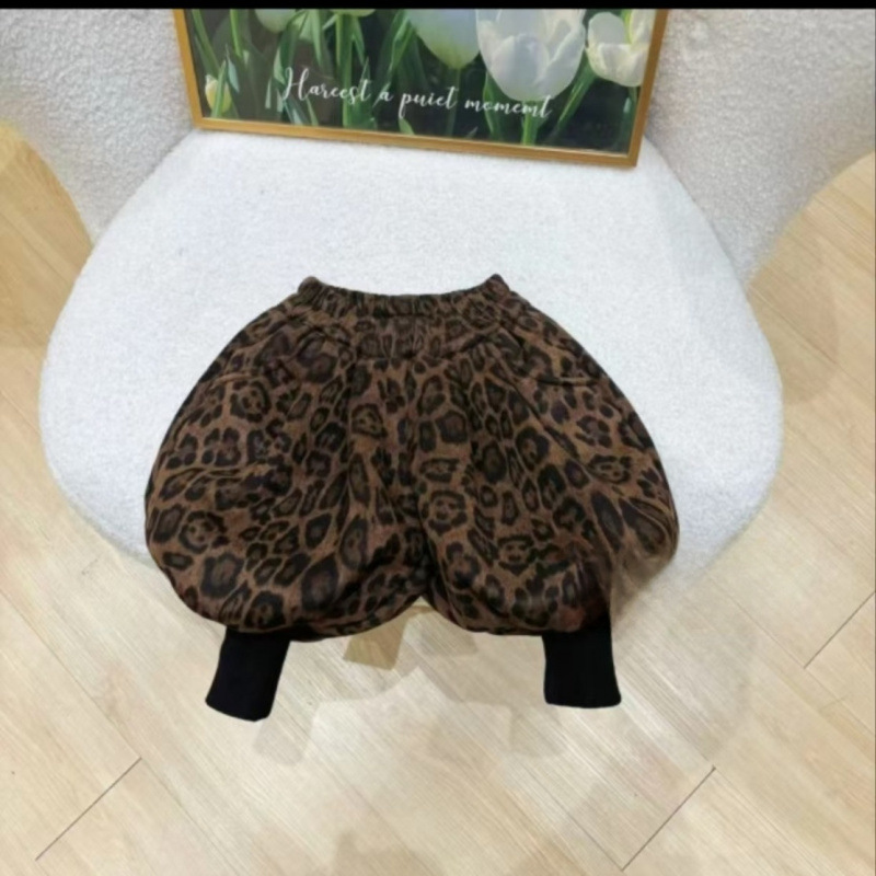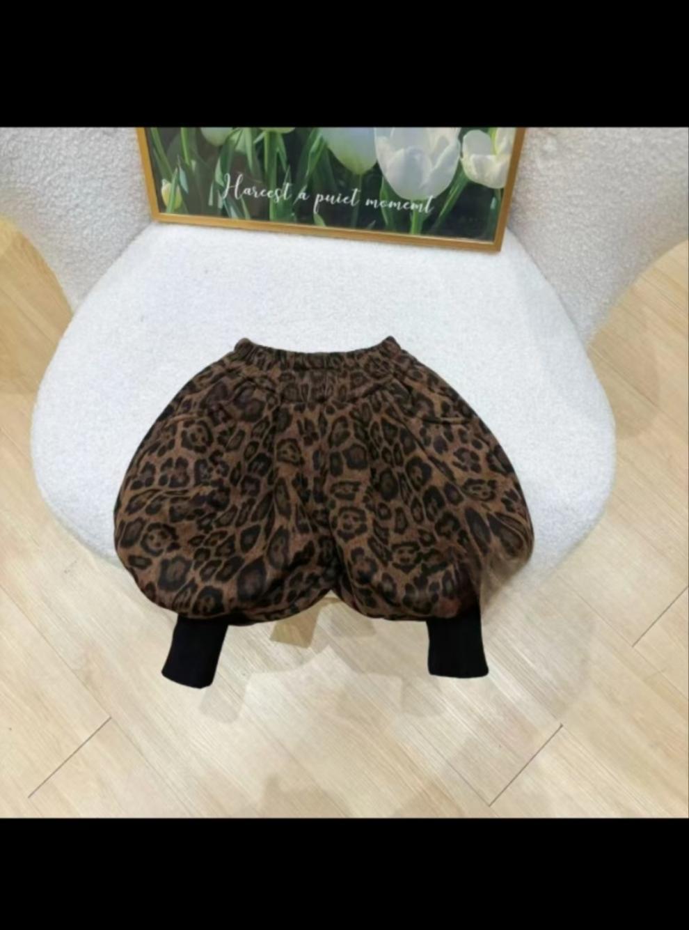 • 레오파드 프린트 플리스 팬츠 싱글 팬츠