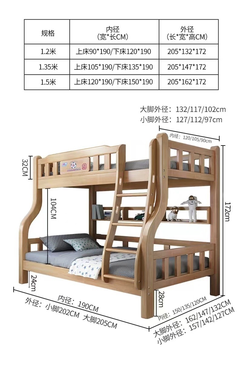 • 하부 침대 1.35x1.9x상부 침대 1.05x1.9
