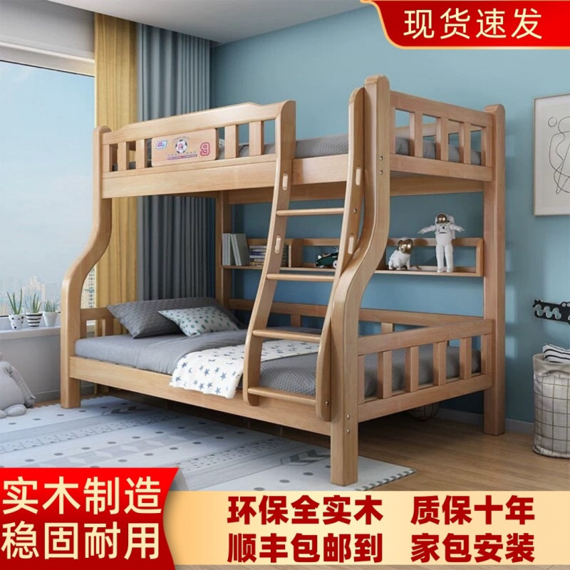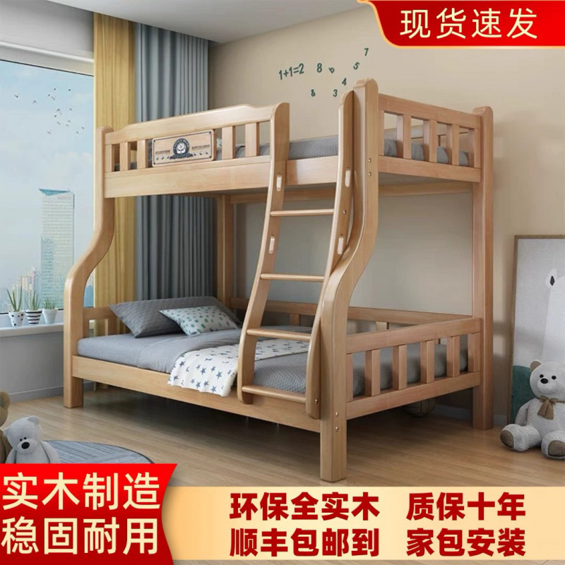 솔리드 우드 높고 낮은 더블 레이어 두꺼운 침대 엄마와 아이 가정용 2 층 작은 아파트 2 층 어린이 침대 침대 침대 침대
