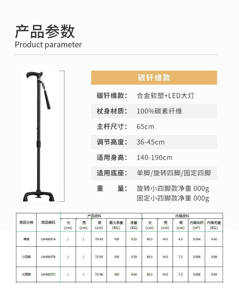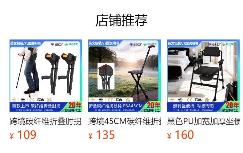 ✅ 为电商平台:打造轻量化、高颜值爆品(如128克超轻碳纤维拐杖),支持小批量贴牌,毛利率行业领先;