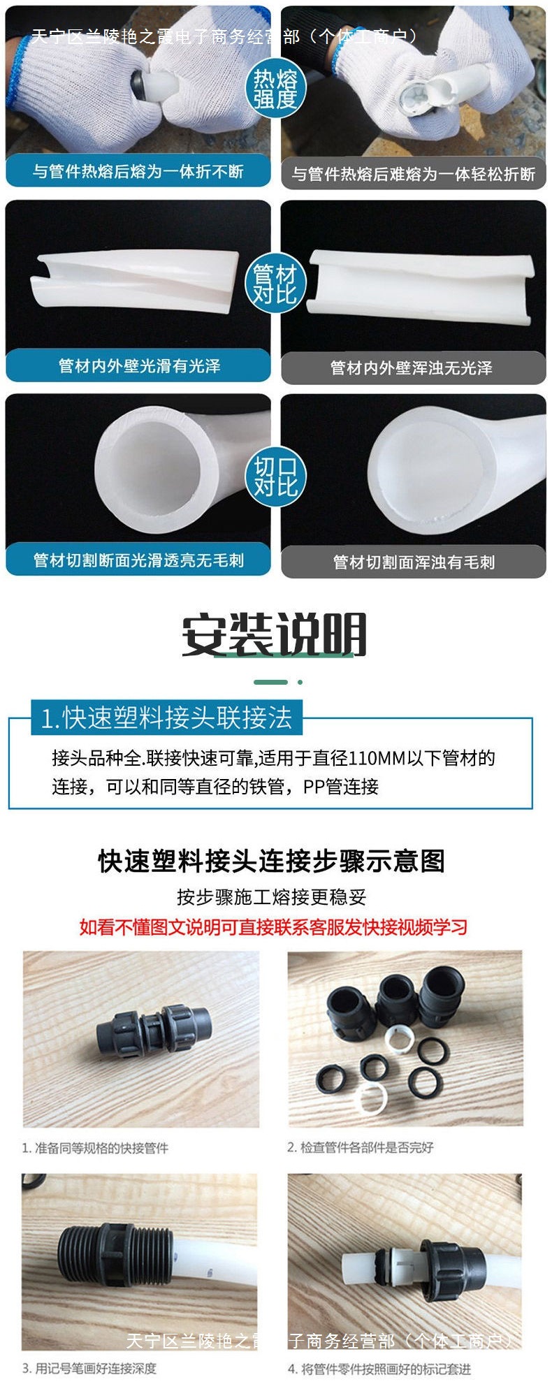 Pe 수돗물 수도관 6 물 분배 파이프 매장 무취 핫멜트 플라스틱 하드 파이프 4 포인트 화이트 워터 공급 파이프 신소재 도매스토어 가기