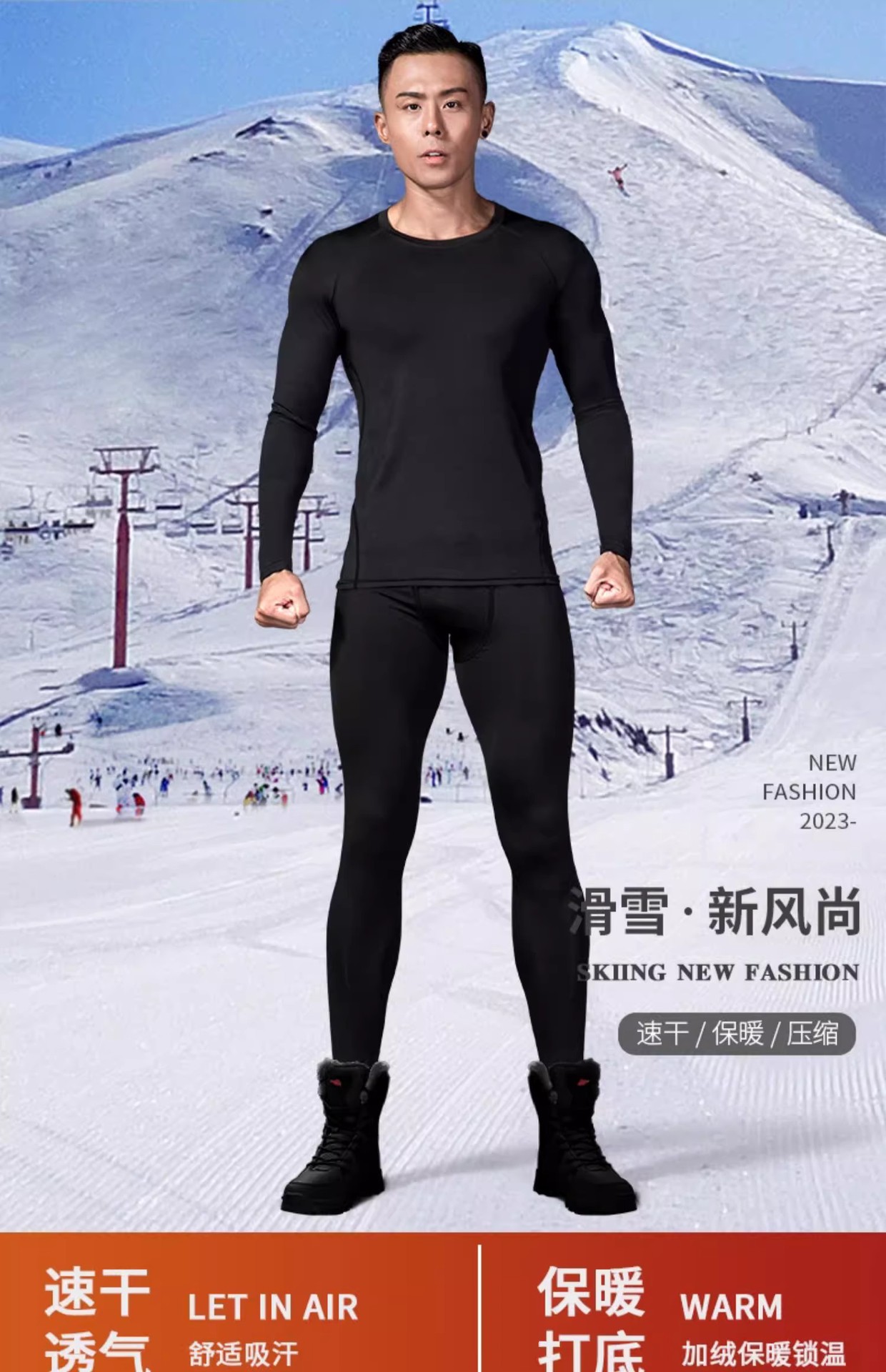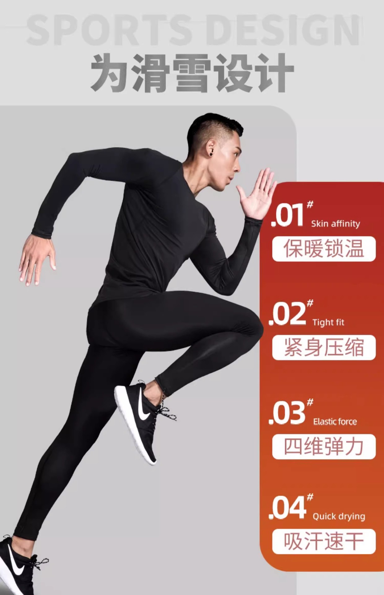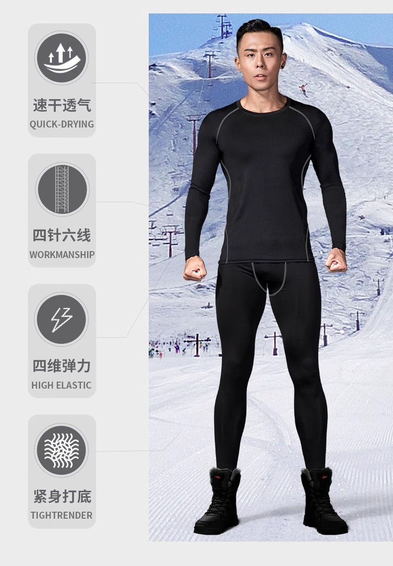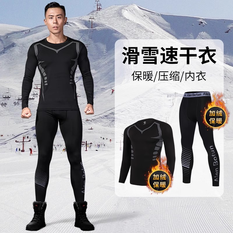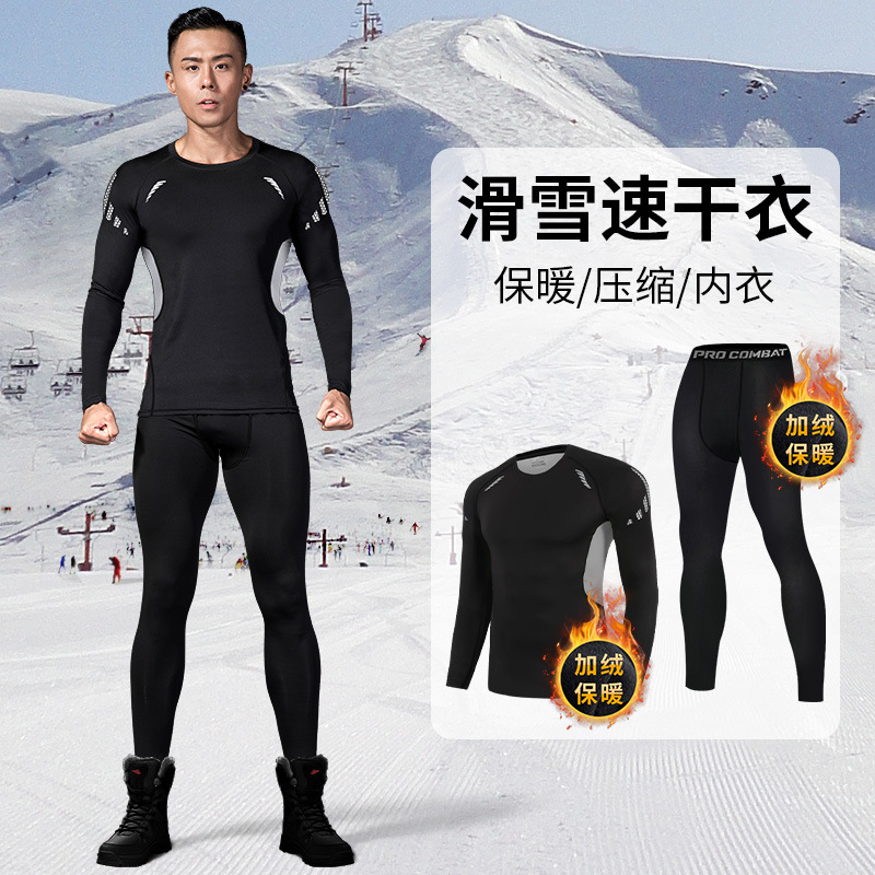 "스키 급건조복 남성용 겨울 기모 따뜻한 내강베이스 압축 야외훈련 달리기 소매스토어 가기