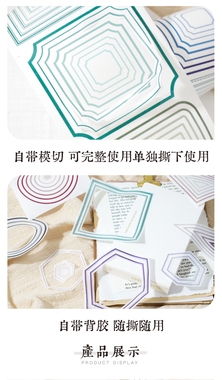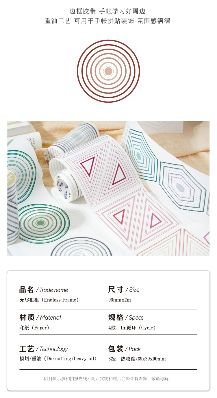 끝없는 프레임 헤비 오일 및 종이 다이 커팅 테이프 간단한 Ins 스타일 할로우 서클 박스 손 계정 장식 스티커