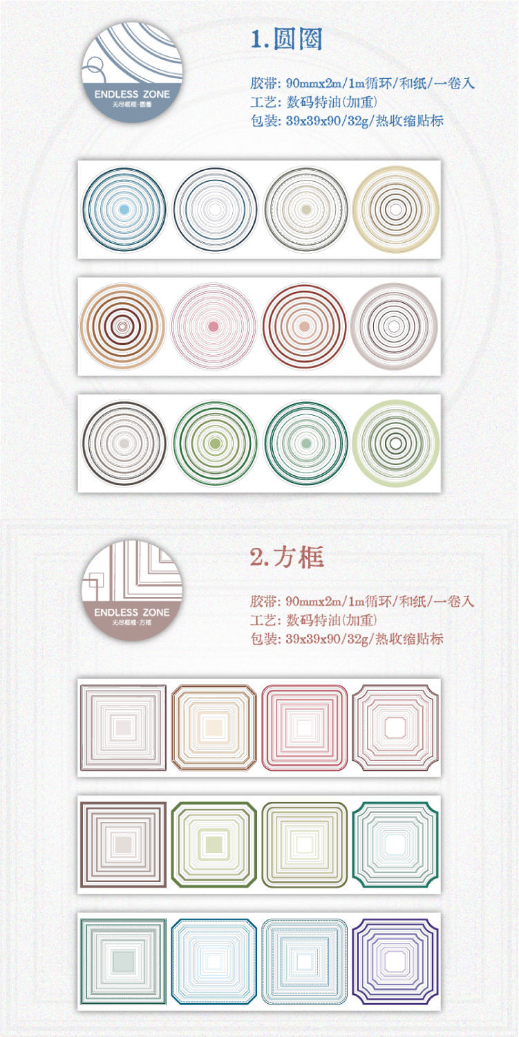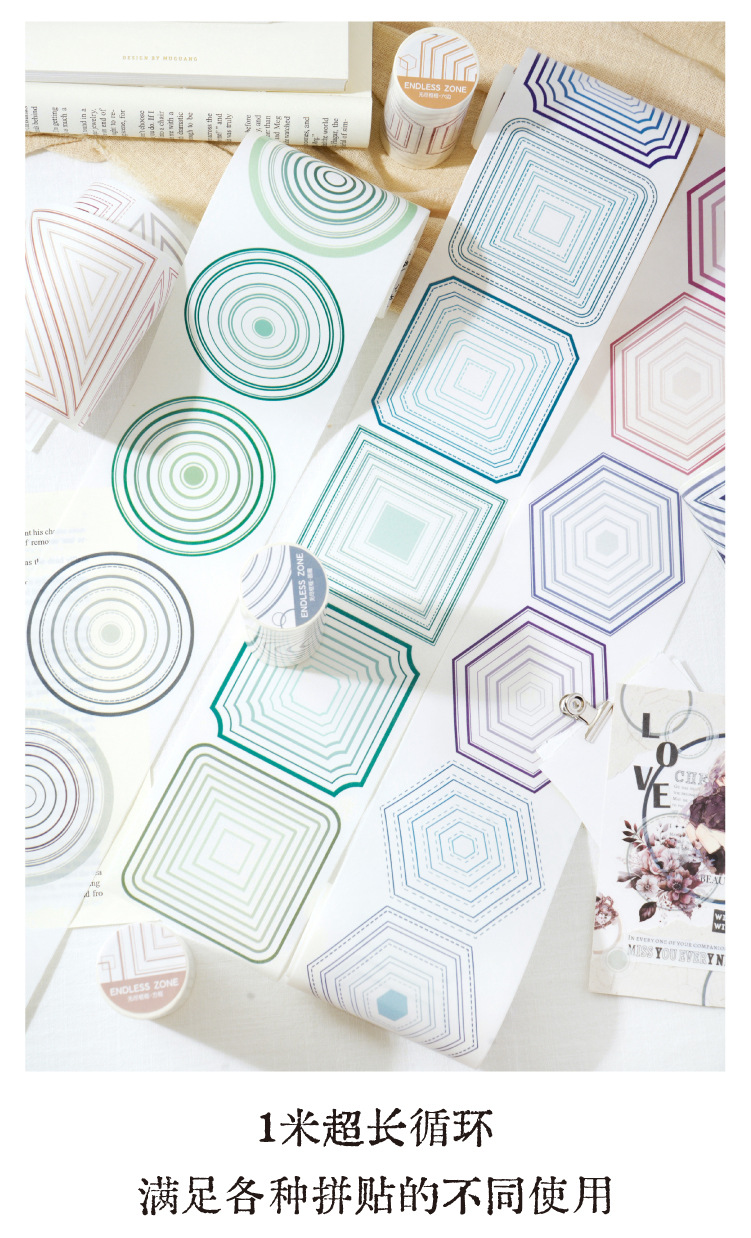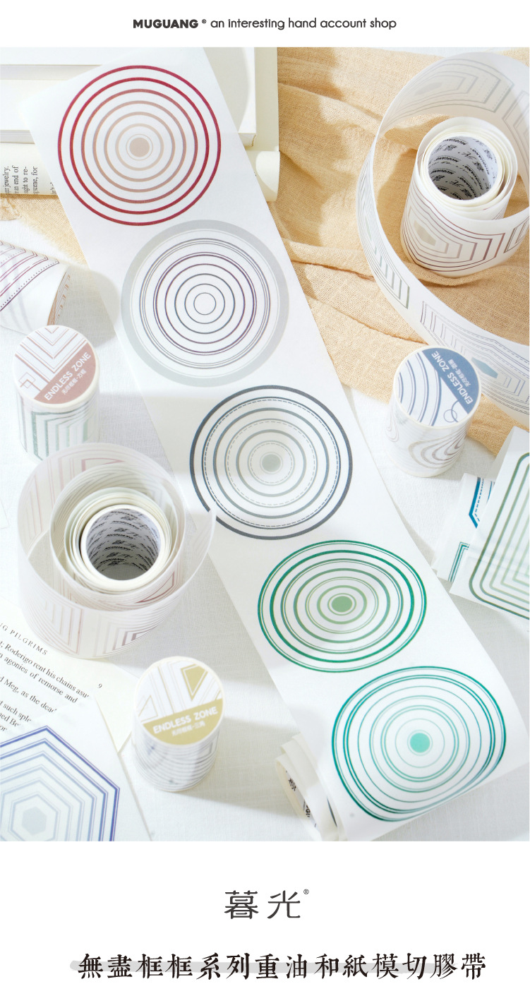 끝없는 프레임 헤비 오일 및 종이 다이 커팅 테이프 간단한 Ins 스타일 할로우 서클 박스 손 계정 장식 스티커스토어 가기