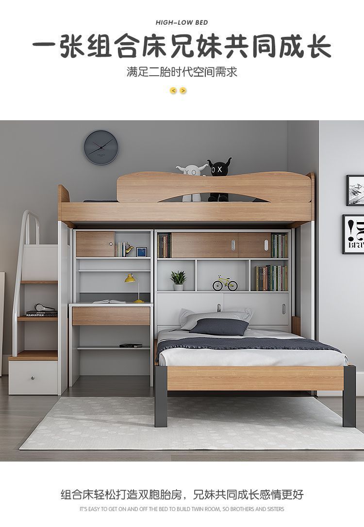 어린이 침대 높고 낮은 침대 이층 높고 낮은 이층 침대 멀티 아이 침대 작은 공간 다기능 조합 침대