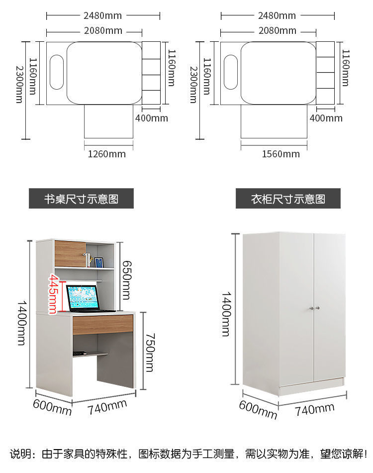 • 침대 + 사다리 캐비닛 + 단일 도어 옷장 + 1.5m 키가 큰 상자 침대