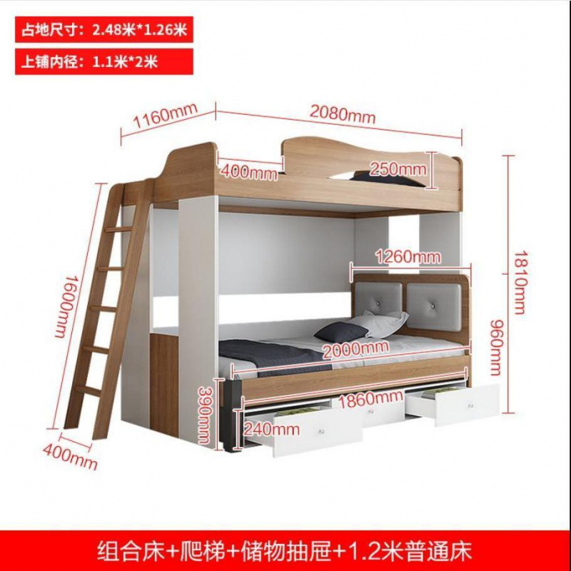 • 침대 + 사다리 캐비닛 + 3단 견인 침대 + 1.2m 일반 침대